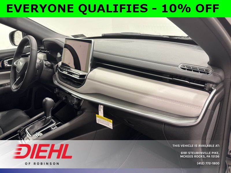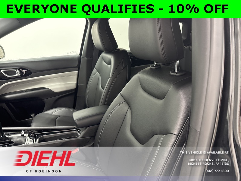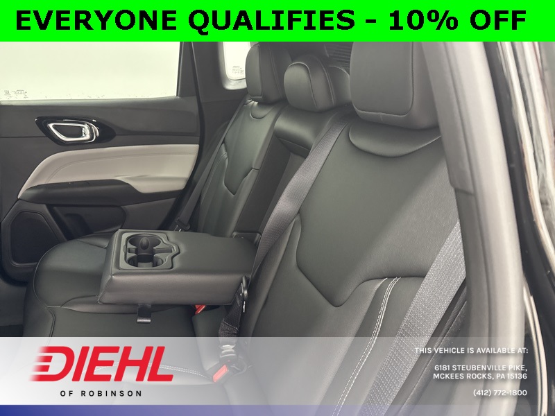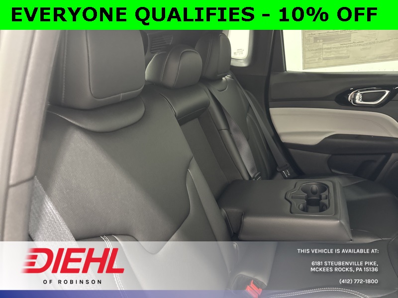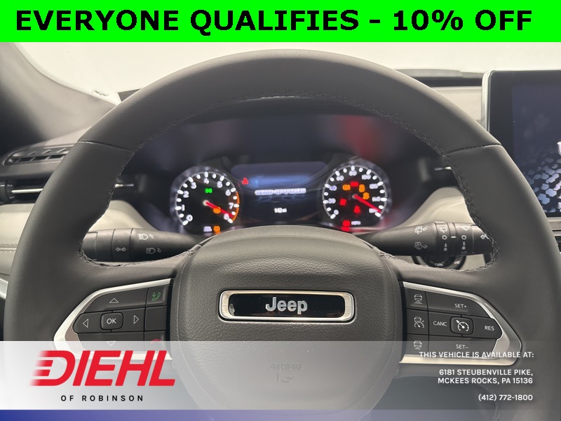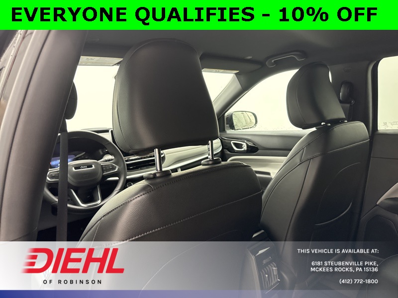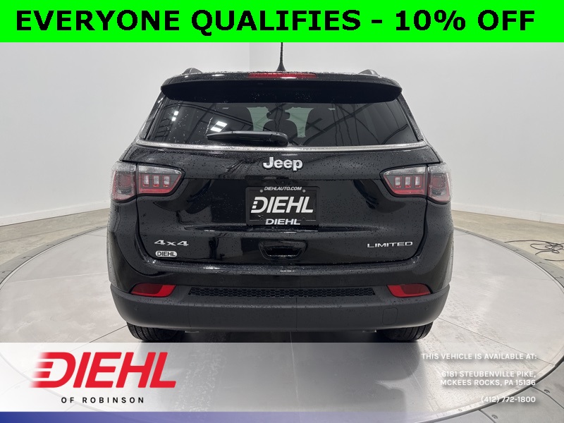 Quick Order Package 29G, 4WD, 10.1" Touchscreen Display, 3.73 Final Drive Ratio, 4-Wheel Disc Brakes, 6 Speakers, ABS brakes, Air Conditioning, Alloy wheels, AM/FM radio: SiriusXM, Apple CarPlay/Android Auto, Auto High-beam Headlights, Auto-dimming Rear-View mirror, Automatic temperature control, Brake assist, Bumpers: body-color, Compass, Delay-off headlights, Driver door bin, Driver vanity mirror, Dual front impact airbags, Dual front side impact airbags, Electronic Stability Control, Emergency communication system: Jeep Connect, Four wheel independent suspension, Front anti-roll bar, Front Bucket Seats, Front Center Armrest w/Storage, Front dual zone A/C, Front fog lights, Front License Plate Bracket, Front reading lights, Fully automatic headlights, Heated door mirrors, Heated front seats, Illuminated entry, Knee airbag, Leather Shift Knob, Leather steering wheel, Leatherette Seats, Low tire pressure warning, Occupant sensing airbag, Outside temperature display, Overhead airbag, Overhead console, Panic alarm, ParkView Rear Back-Up Camera, Passenger door bin, Passenger vanity mirror, Power door mirrors, Power driver seat, Power steering, Power windows, Premium audio system: UConnect 5, Radio: Uconnect 5 w/10.1" Display, Rain sensing wipers, Rear anti-roll bar, Rear seat center armrest, Rear window defroster, Rear window wiper, Remote keyless entry, Security system, Speed control, Split folding rear seat, Spoiler, Steering wheel mounted audio controls, Tachometer, Telescoping steering wheel, Tilt steering wheel, Traction control, Trip computer, Turn signal indicator mirrors, Variably intermittent wipers, and Wheels: 18" x 7" Painted Diamond Cut Alum (DISC) 4WD. Recent Arrival! Diamond Black Crystal Pearlcoat 2025 Jeep Compass Limited 4WD 8-Speed Automatic 2.0L I4 DOHC