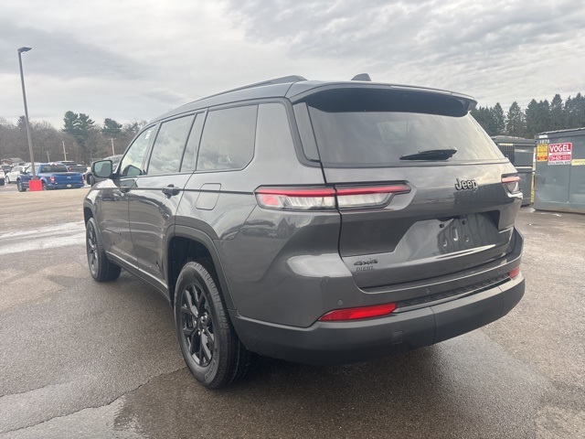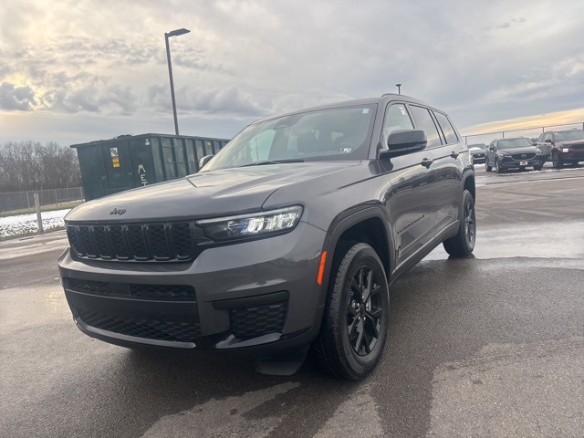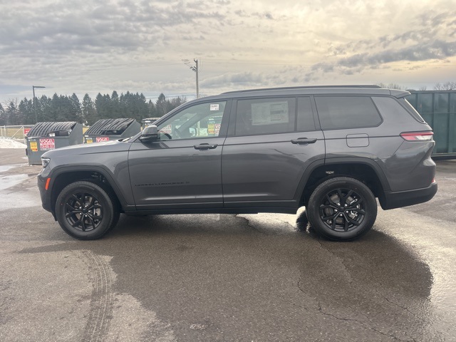 Quick Order Package 23M Altitude X (115V Auxiliary Power Outlet, 3rd Row Charge-Only USB Ports, Altitude X, Black Headliner, Capri Leatherette/Suede Seats, Delete Laredo Badge, Gloss Black Exterior Accents, Heated Front Seats, Heated Steering Wheel, Power Liftgate, Power Sunroof, Rain Sensitive Windshield Wipers, Remote Start System, Selectable Tire Fill Alert, Wheels: 18" x 8.0" Fully Painted Aluminum 1, and Wireless Charging Pad), 3.45 Rear Axle Ratio, 3rd row seats: split-bench, 4-Wheel Disc Brakes, 6 Speakers, ABS brakes, Air Conditioning, Alloy wheels, AM/FM radio: SiriusXM, Anti-whiplash front head restraints, Automatic temperature control, Brake assist, Bumpers: body-color, Cloth Seats, Compass, Delay-off headlights, Driver door bin, Driver vanity mirror, Dual front impact airbags, Dual front side impact airbags, Electronic Stability Control, Emergency communication system, Four wheel independent suspension, Front anti-roll bar, Front Bucket Seats, Front Center Armrest w/Storage, Front dual zone A/C, Front reading lights, Fully automatic headlights, Heated door mirrors, Illuminated entry, Knee airbag, Low tire pressure warning, Manual Fold Seatbacks, Model Year Tracking, Normal Duty Suspension, Occupant sensing airbag, Outside temperature display, Overhead airbag, Overhead console, Panic alarm, ParkView Rear Back-Up Camera, Passenger door bin, Passenger vanity mirror, Power door mirrors, Power driver seat, Power steering, Power windows, Radio data system, Radio: Uconnect 5 with 8.4" Display, Rear air conditioning, Rear anti-roll bar, Rear reading lights, Rear window defroster, Rear window wiper, Reclining 3rd row seat, Remote keyless entry, Security system, Speed control, Speed-Sensitive Wipers, Split folding rear seat, Spoiler, Steering wheel mounted audio controls, Tachometer, Telescoping steering wheel, Tilt steering wheel, Traction control, Trip computer, Variably intermittent wipers, Voltmeter, and Wheels: 18" x 8.0" Fully Painted Aluminum. Baltic Gray Metallic Clearcoat 2025 Jeep Grand Cherokee L Altitude X 4WD 8-Speed Automatic 3.6L V6 24V VVT