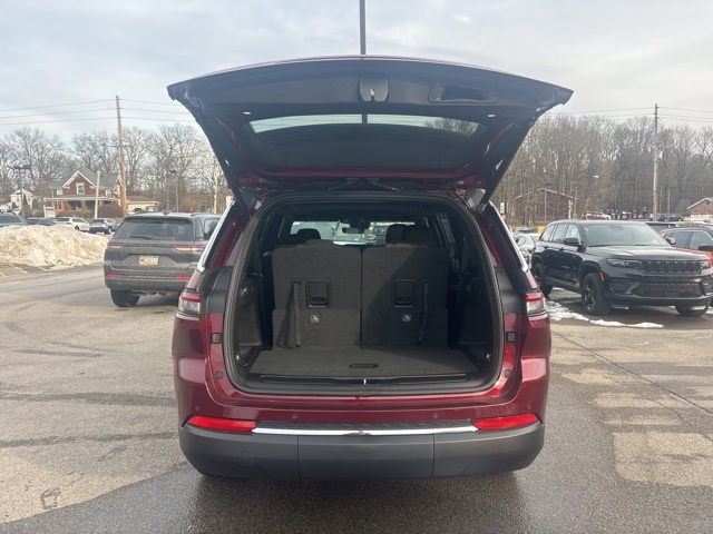 ABS brakes, Alloy wheels, Compass, Electronic Stability Control, Emergency communication system, Front dual zone A/C, Heated door mirrors, Illuminated entry, Low tire pressure warning, ParkView Rear Back-Up Camera, Remote keyless entry, Traction control, 3.45 Rear Axle Ratio, 3rd row seats: split-bench, 4-Wheel Disc Brakes, 6 Speakers, Air Conditioning, AM/FM radio: SiriusXM, Anti-whiplash front head restraints, Automatic temperature control, Brake assist, Bumpers: body-color, Cloth Seats, Delay-off headlights, Driver door bin, Driver vanity mirror, Dual front impact airbags, Dual front side impact airbags, Four wheel independent suspension, Front anti-roll bar, Front Bucket Seats, Front Center Armrest w/Storage, Front reading lights, Fully automatic headlights, Knee airbag, Manual Fold Seatbacks, Normal Duty Suspension, Occupant sensing airbag, Outside temperature display, Overhead airbag, Overhead console, Panic alarm, Passenger door bin, Passenger vanity mirror, Power door mirrors, Power driver seat, Power steering, Power windows, Radio data system, Rear air conditioning, Rear anti-roll bar, Rear reading lights, Rear window defroster, Rear window wiper, Reclining 3rd row seat, Security system, Speed control, Speed-Sensitive Wipers, Split folding rear seat, Spoiler, Steering wheel mounted audio controls, Tachometer, Telescoping steering wheel, Tilt steering wheel, Trip computer, Variably intermittent wipers, Voltmeter, and Wheels: 18" x 8.0" Fully Painted Aluminum. ABS brakes, Alloy wheels, Compass, Electronic Stability Control, Emergency communication system, Front dual zone A/C, Heated door mirrors, Illuminated entry, Low tire pressure warning, ParkView Rear Back-Up Camera, Remote keyless entry, Traction control. Velvet Red Pearlcoat 2025 Jeep Grand Cherokee L Laredo X 4WD 8-Speed Automatic 3.6L V6 24V VVT