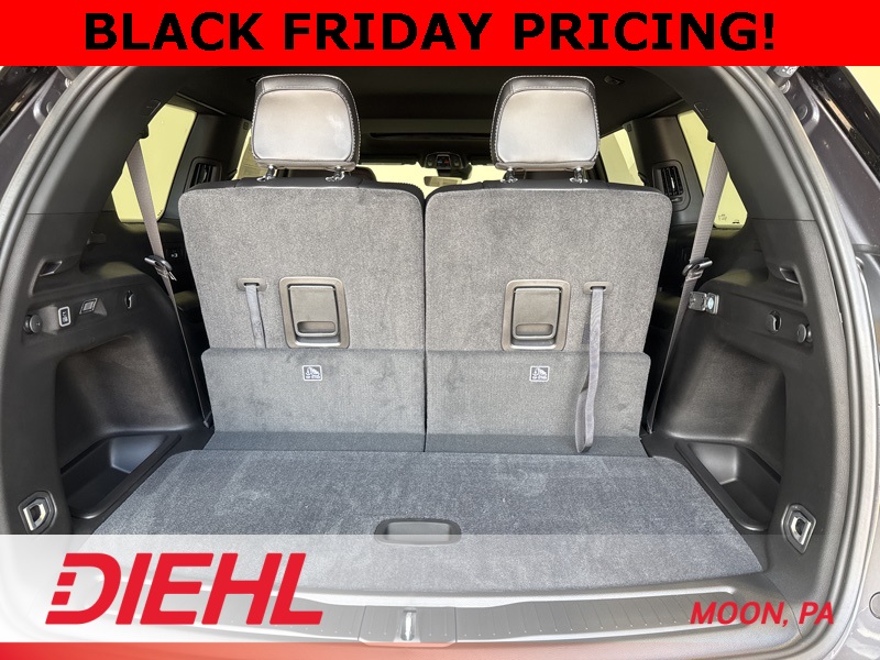 Inside, sophistication meets practicality. The black leatherette and suede seats are heated in both the front and second rows, the heated steering wheel adds comfort to cold commutes, and the tri zone climate control keeps everyone happy from front to back. The 10.1 inch touchscreen with Apple CarPlay, Android Auto, and voice command makes every trip connected and convenient. With the Customer Preferred Package, you also get a power liftgate, remote start, rain sensing wipers, wireless charging pad, and black exterior accents that give this SUV a sleek, modern edge.