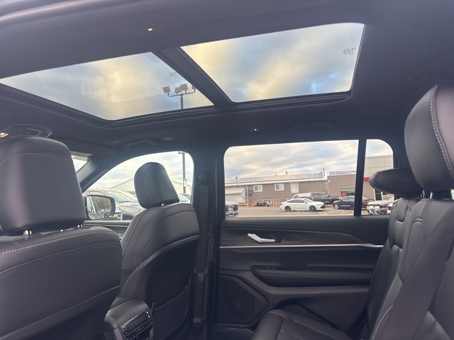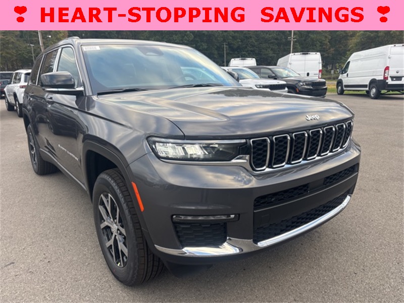 Quick Order Package 22E, Trailer Tow Package (220 Amp Alternator, 7 and 4 Pin Wiring Harness, Automatic Headlamp Leveling System, Class IV Receiver Hitch, Dual Exhaust Tips, Heavy-Duty Engine Cooling, Rear Load Leveling Suspension, and Trailer Hitch Zoom), 3.45 Rear Axle Ratio, 3rd row seats: split-bench, 4-Wheel Disc Brakes, 6 Speakers, ABS brakes, Active Noise Control System, Air Conditioning, Alloy wheels, AM/FM radio: SiriusXM with 360L, Anti-whiplash front head restraints, Audio memory, Auto High-beam Headlights, Automatic temperature control, Brake assist, Bumpers: body-color, Capri Leatherette Seats, Compass, Delay-off headlights, Driver door bin, Driver vanity mirror, Dual front impact airbags, Dual front side impact airbags, Dual-Pane Panoramic Sunroof, Electronic Stability Control, Emergency communication system, Four wheel independent suspension, Front anti-roll bar, Front Bucket Seats, Front Center Armrest w/Storage, Front dual zone A/C, Front fog lights, Front reading lights, Fully automatic headlights, Garage door transmitter, Heated door mirrors, Heated front seats, Heated rear seats, Heated steering wheel, Illuminated entry, Interior Rear Facing Camera, Knee airbag, Low tire pressure warning, Manual Fold Seatbacks, Memory seat, Model Year Tracking, Navigation System, Normal Duty Suspension, Occupant sensing airbag, Outside temperature display, Overhead airbag, Overhead console, Panic alarm, ParkView Rear Back-Up Camera, Passenger door bin, Passenger vanity mirror, Power door mirrors, Power driver seat, Power Liftgate, Power passenger seat, Power steering, Power windows, Radio data system, Radio: Uconnect 5 Nav with 10.1" Display, Rear air conditioning, Rear anti-roll bar, Rear reading lights, Rear window defroster, Rear window wiper, Reclining 3rd row seat, Remote keyless entry, Security system, Speed control, Speed-Sensitive Wipers, Split folding rear seat, Spoiler, Steering wheel mounted audio controls, Tachometer, Telescoping steering wheel, Tilt steering wheel, Traction control, Trip computer, Turn signal indicator mirrors, Variably intermittent wipers, Voltmeter, and Wheels: 18" x 8.0" Polished/Painted Aluminum. Baltic Gray Metallic Clearcoat 2025 Jeep Grand Cherokee L Limited 4WD 8-Speed Automatic 3.6L V6 24V VVT