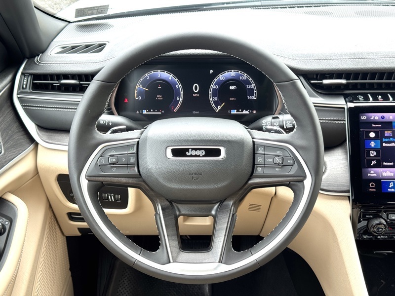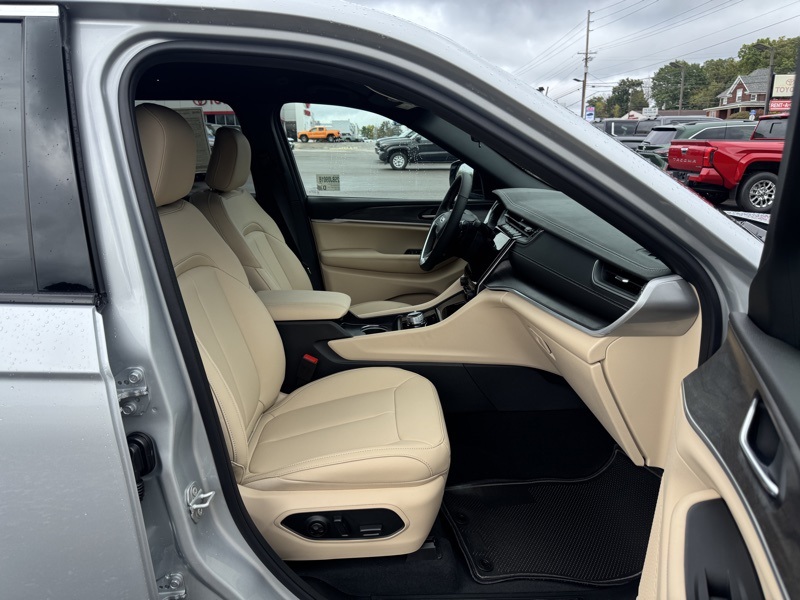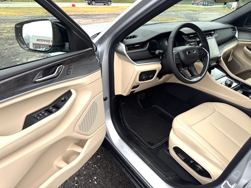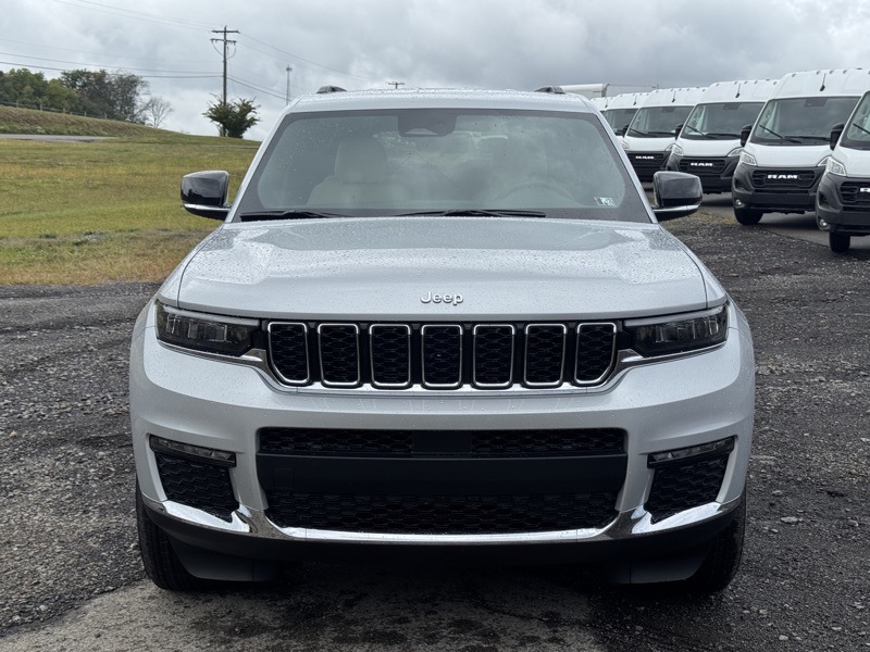 Quick Order Package 22E, 3.45 Rear Axle Ratio, 3rd row seats: split-bench, 4-Wheel Disc Brakes, 6 Speakers, ABS brakes, Active Noise Control System, Air Conditioning, Alloy wheels, AM/FM radio: SiriusXM with 360L, Anti-whiplash front head restraints, Audio memory, Auto High-beam Headlights, Automatic temperature control, Brake assist, Bumpers: body-color, Capri Leatherette Seats, Compass, Delay-off headlights, Driver door bin, Driver vanity mirror, Dual front impact airbags, Dual front side impact airbags, Electronic Stability Control, Emergency communication system, Four wheel independent suspension, Front anti-roll bar, Front Bucket Seats, Front Center Armrest w/Storage, Front dual zone A/C, Front fog lights, Front reading lights, Fully automatic headlights, Garage door transmitter, Heated door mirrors, Heated front seats, Heated rear seats, Heated steering wheel, Illuminated entry, Knee airbag, Low tire pressure warning, Manual Fold Seatbacks, Memory seat, Model Year Tracking, Navigation System, Normal Duty Suspension, Occupant sensing airbag, Outside temperature display, Overhead airbag, Overhead console, Panic alarm, ParkView Rear Back-Up Camera, Passenger door bin, Passenger vanity mirror, Power door mirrors, Power driver seat, Power Liftgate, Power passenger seat, Power steering, Power windows, Radio data system, Radio: Uconnect 5 Nav with 10.1" Display, Rear air conditioning, Rear anti-roll bar, Rear reading lights, Rear window defroster, Rear window wiper, Reclining 3rd row seat, Remote keyless entry, Security system, Speed control, Speed-Sensitive Wipers, Split folding rear seat, Spoiler, Steering wheel mounted audio controls, Tachometer, Telescoping steering wheel, Tilt steering wheel, Traction control, Trip computer, Turn signal indicator mirrors, Variably intermittent wipers, Voltmeter, and Wheels: 18" x 8.0" Polished/Painted Aluminum. Silver Zynith 2025 Jeep Grand Cherokee L Limited 4WD 8-Speed Automatic 3.6L V6 24V VVT