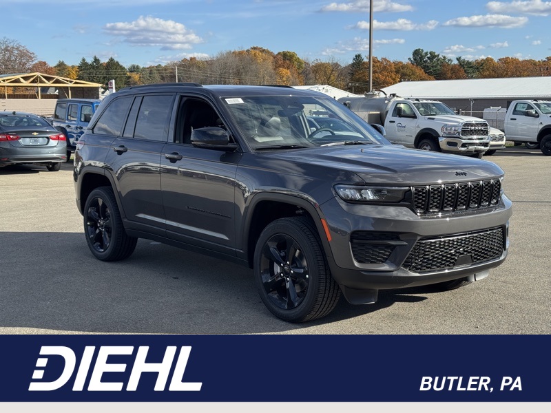 4WD, ABS brakes, Active Cruise Control, Alloy wheels, Compass, Electronic Stability Control, Emergency communication system, Front dual zone A/C, Heated door mirrors, Illuminated entry, Low tire pressure warning, ParkView Rear Back-Up Camera, Remote keyless entry, Traction control, 4-Wheel Disc Brakes, 6 Speakers, Air Conditioning, AM/FM radio: SiriusXM, Anti-whiplash front head restraints, Automatic temperature control, Brake assist, Bumpers: body-color, Cloth Seats, Delay-off headlights, Driver door bin, Driver vanity mirror, Dual front impact airbags, Dual front side impact airbags, Four wheel independent suspension, Front anti-roll bar, Front Bucket Seats, Front Center Armrest w/Storage, Front reading lights, Fully automatic headlights, Knee airbag, Normal Duty Suspension, Occupant sensing airbag, Outside temperature display, Overhead airbag, Overhead console, Panic alarm, Passenger door bin, Passenger vanity mirror, Power door mirrors, Power driver seat, Power steering, Power windows, Radio data system, Radio: Uconnect 5 w/8.4" Display, Rear anti-roll bar, Rear reading lights, Rear window defroster, Rear window wiper, Security system, Speed control, Speed-Sensitive Wipers, Split folding rear seat, Spoiler, Steering wheel mounted audio controls, Tachometer, Telescoping steering wheel, Tilt steering wheel, Trip computer, Variably intermittent wipers, Voltmeter, and Wheels: 17" x 6.5" Fully Painted Aluminum. 4WD, ABS brakes, Active Cruise Control, Alloy wheels, Compass, Electronic Stability Control, Emergency communication system, Front dual zone A/C, Heated door mirrors, Illuminated entry, Low tire pressure warning, ParkView Rear Back-Up Camera, Remote keyless entry, Traction control. Baltic Gray Metallic Clearcoat 2025 Jeep Grand Cherokee Altitude X 4WD 8-Speed Automatic 3.6L V6 24V VVT