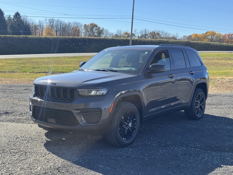 Quick Order Package 23M Altitude X (115V Auxiliary Power Outlet, Altitude X, Black Headliner, Capri Leatherette/Suede Seats, Delete Laredo Badge, Gloss Black Exterior Accents, Heated Front Seats, Heated Steering Wheel, Power Liftgate, Power Sunroof, Rain Sensitive Windshield Wipers, Remote Start System, Selectable Tire Fill Alert, Wheels: 18" x 8" Fully Painted Aluminum 1, and Wireless Charging Pad), Trailer Tow Package (180 Amp Alternator, 7 & 4-Pin Wiring Harness, Automatic Headlamp Levelling System, Class IV Receiver Hitch, Heavy-Duty Engine Cooling, Rear Load Levelling Suspension, and Trailer Hitch Zoom), 4WD, 4-Wheel Disc Brakes, 6 Speakers, ABS brakes, Air Conditioning, Alloy wheels, AM/FM radio: SiriusXM, Anti-whiplash front head restraints, Automatic temperature control, Brake assist, Bumpers: body-color, Cloth Seats, Compass, Delay-off headlights, Driver door bin, Driver vanity mirror, Dual front impact airbags, Dual front side impact airbags, Electronic Stability Control, Emergency communication system, Four wheel independent suspension, Front anti-roll bar, Front Bucket Seats, Front Center Armrest w/Storage, Front dual zone A/C, Front reading lights, Fully automatic headlights, Heated door mirrors, Illuminated entry, Knee airbag, Low tire pressure warning, Model Year Tracking, Normal Duty Suspension, Occupant sensing airbag, Outside temperature display, Overhead airbag, Overhead console, Panic alarm, ParkView Rear Back-Up Camera, Passenger door bin, Passenger vanity mirror, Power door mirrors, Power driver seat, Power steering, Power windows, Radio data system, Radio: Uconnect 5 w/8.4" Display, Rear anti-roll bar, Rear reading lights, Rear window defroster, Rear window wiper, Remote keyless entry, Security system, Speed control, Speed-Sensitive Wipers, Split folding rear seat, Spoiler, Steering wheel mounted audio controls, Tachometer, Telescoping steering wheel, Tilt steering wheel, Traction control, Trip computer, Variably intermittent wipers, Voltmeter, and Wheels: 17" x 6.5" Fully Painted Aluminum. 4WD. Baltic Gray Metallic Clearcoat 2025 Jeep Grand Cherokee Altitude X 4WD 8-Speed Automatic 3.6L V6 24V VVT