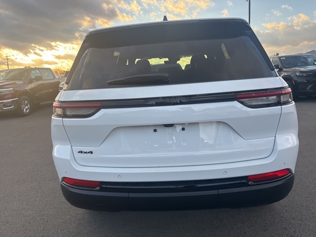 Quick Order Package 23M Altitude X (115V Auxiliary Power Outlet, Altitude X, Black Headliner, Capri Leatherette/Suede Seats, Delete Laredo Badge, Gloss Black Exterior Accents, Heated Front Seats, Heated Steering Wheel, Power Liftgate, Power Sunroof, Rain Sensitive Windshield Wipers, Remote Start System, Selectable Tire Fill Alert, Wheels: 18" x 8" Fully Painted Aluminum 1, and Wireless Charging Pad), Trailer Tow Package (180 Amp Alternator, 7 & 4-Pin Wiring Harness, Automatic Headlamp Levelling System, Class IV Receiver Hitch, Heavy-Duty Engine Cooling, Rear Load Levelling Suspension, and Trailer Hitch Zoom), 4WD, 4-Wheel Disc Brakes, 6 Speakers, ABS brakes, Air Conditioning, Alloy wheels, AM/FM radio: SiriusXM, Anti-whiplash front head restraints, Automatic temperature control, Brake assist, Bumpers: body-color, Cloth Seats, Compass, Delay-off headlights, Driver door bin, Driver vanity mirror, Dual front impact airbags, Dual front side impact airbags, Electronic Stability Control, Emergency communication system, Four wheel independent suspension, Front anti-roll bar, Front Bucket Seats, Front Center Armrest w/Storage, Front dual zone A/C, Front reading lights, Fully automatic headlights, Heated door mirrors, Illuminated entry, Knee airbag, Low tire pressure warning, Model Year Tracking, Normal Duty Suspension, Occupant sensing airbag, Outside temperature display, Overhead airbag, Overhead console, Panic alarm, ParkView Rear Back-Up Camera, Passenger door bin, Passenger vanity mirror, Power door mirrors, Power driver seat, Power steering, Power windows, Radio data system, Radio: Uconnect 5 w/8.4" Display, Rear anti-roll bar, Rear reading lights, Rear window defroster, Rear window wiper, Remote keyless entry, Security system, Speed control, Speed-Sensitive Wipers, Split folding rear seat, Spoiler, Steering wheel mounted audio controls, Tachometer, Telescoping steering wheel, Tilt steering wheel, Traction control, Trip computer, Variably intermittent wipers, Voltmeter, Wheels: 17" x 6.5" Fully Painted Aluminum, and Wheels: 20" x 8.5" Gloss Black Painted Aluminum. 4WD. Bright White Clearcoat 2025 Jeep Grand Cherokee Altitude X 4WD 8-Speed Automatic 3.6L V6 24V VVT