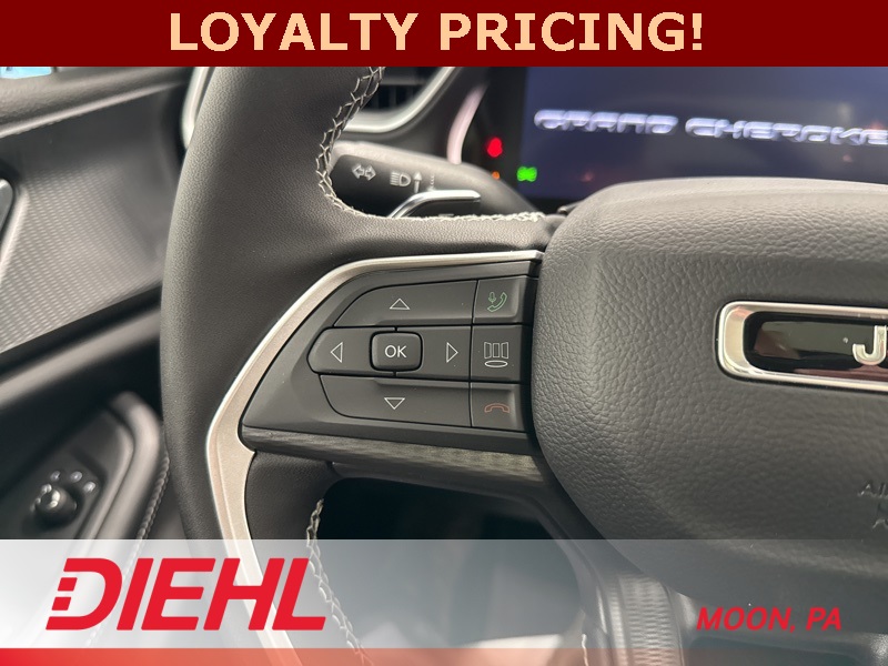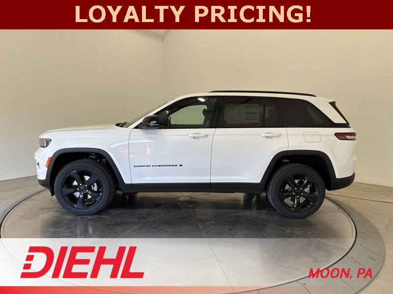 Technology takes the spotlight with a 10.1 inch touchscreen featuring Apple CarPlay, Android Auto, and built in voice command for effortless control. The available power liftgate, wireless charging pad, and remote start add convenience to every day, while advanced safety features like Adaptive Cruise Control, Blind Spot Monitoring, and ParkSense Rear Park Assist give you confidence from driveway to highway. With 4x4 traction, 26 highway MPG, and unmistakable Jeep attitude, this new Jeep Grand Cherokee Altitude X for sale near Pittsburgh delivers style, comfort, and capability in one perfect package. Visit Diehl of Moon Chrysler Jeep Dodge Ram in Moon Township PA for the best new car deals near Pittsburgh and experience why Jeep continues to set the standard for premium SUVs. Schedule your test drive today and see what elevated driving feels like. Price includes: $1500 - 2025 National Stellantis Loyalty Retail Bonus Cash . Exp. 01/05/2026 $2000 - 2025 National SFS Lease Loyalty Bonus Cash. Exp. 01/05/2026 $2250 - 2025 National Retail Bonus Cash . Exp. 01/05/2026 $500 - 2025 National 2025 First Responder Bonus Cash. Exp. 01/05/2026