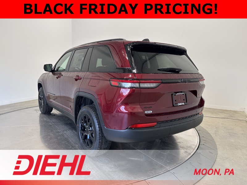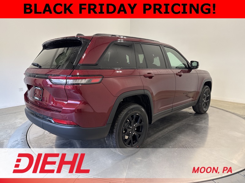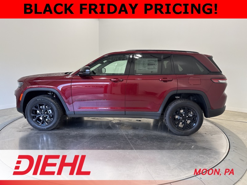 Technology takes the spotlight with a 10.1 inch touchscreen featuring Apple CarPlay, Android Auto, and built in voice command for effortless control. The available power liftgate, wireless charging pad, and remote start add convenience to every day, while advanced safety features like Adaptive Cruise Control, Blind Spot Monitoring, and ParkSense Rear Park Assist give you confidence from driveway to highway. With 4x4 traction, 26 highway MPG, and unmistakable Jeep attitude, this new Jeep Grand Cherokee Altitude X for sale near Pittsburgh delivers style, comfort, and capability in one perfect package. Visit Diehl of Moon Chrysler Jeep Dodge Ram in Moon Township PA for the best new car deals near Pittsburgh and experience why Jeep continues to set the standard for premium SUVs. Schedule your test drive today and see what elevated driving feels like. Price includes: $1000 - 2025 National Grand Cherokee Loyalty Retail Bonus Cash . Exp. 12/01/2025 $1500 - 2025 National Stellantis Loyalty Retail Bonus Cash . Exp. 12/01/2025 $2000 - 2025 National SFS Lease Loyalty Bonus Cash. Exp. 12/01/2025 $2250 - 2025 National Retail Bonus Cash . Exp. 12/01/2025 $500 - 2025 National 2025 First Responder Bonus Cash. Exp. 01/05/2026
