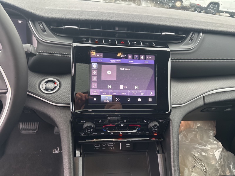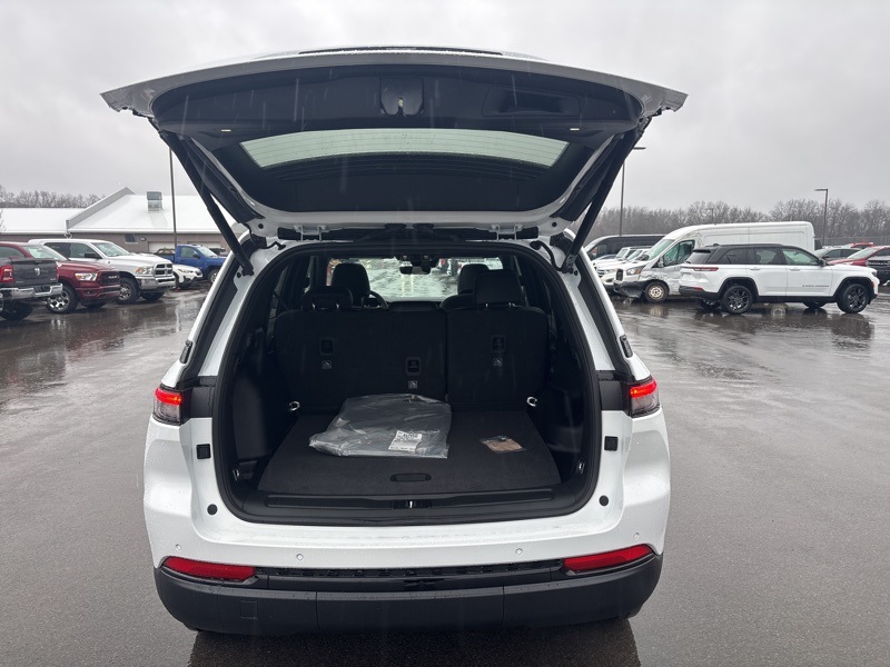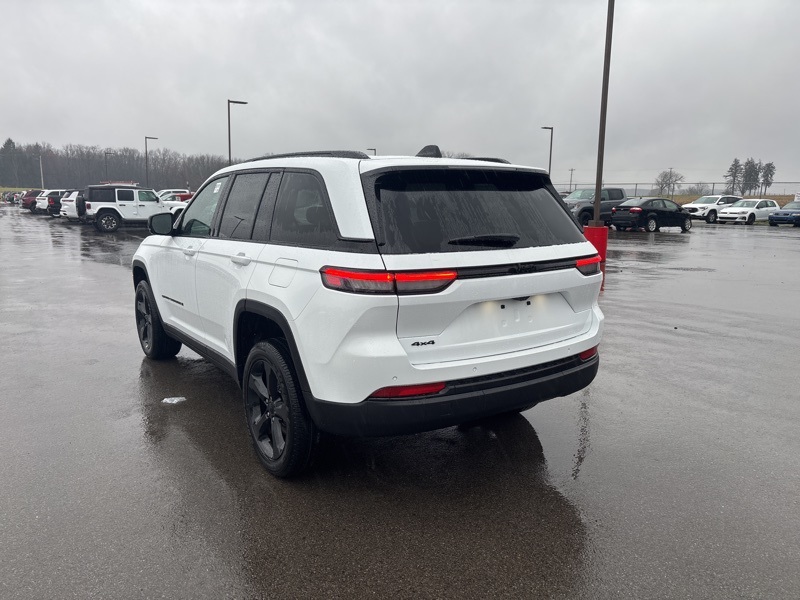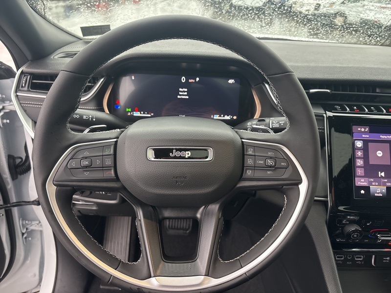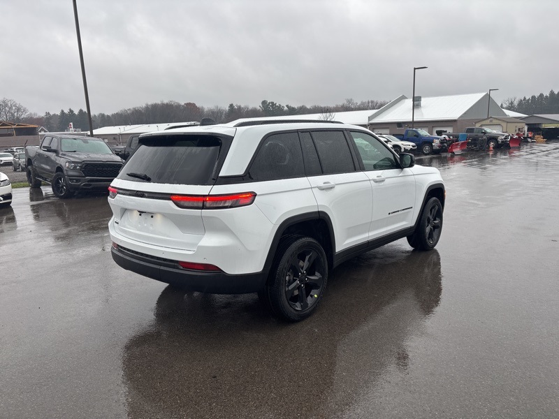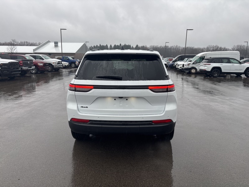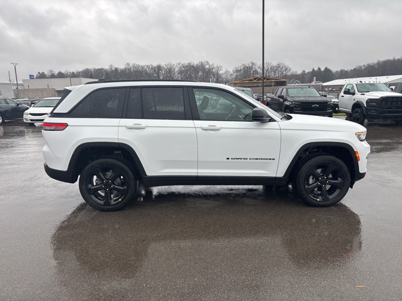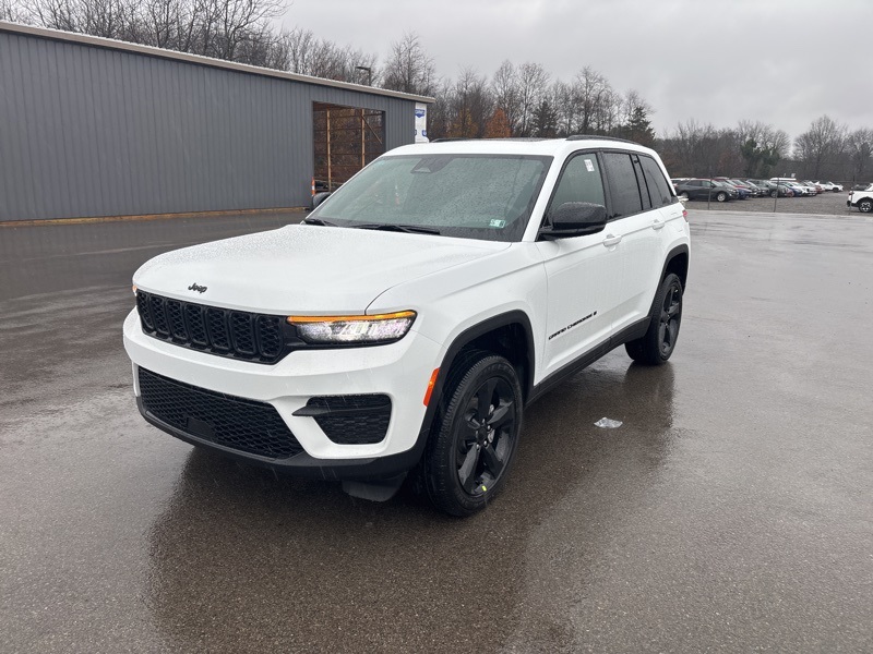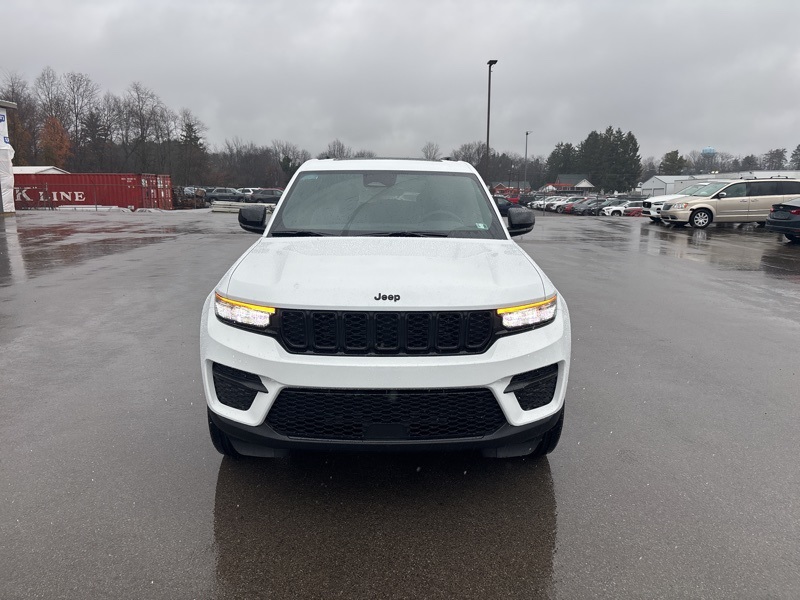 Quick Order Package 23M Altitude X (115V Auxiliary Power Outlet, Altitude X, Black Headliner, Capri Leatherette/Suede Seats, Delete Laredo Badge, Gloss Black Exterior Accents, Heated Front Seats, Heated Steering Wheel, Power Liftgate, Power Sunroof, Rain Sensitive Windshield Wipers, Remote Start System, Selectable Tire Fill Alert, Wheels: 18" x 8" Fully Painted Aluminum 1, and Wireless Charging Pad), 4WD, 4-Wheel Disc Brakes, 6 Speakers, ABS brakes, Air Conditioning, Alloy wheels, AM/FM radio: SiriusXM, Anti-whiplash front head restraints, Automatic temperature control, Brake assist, Bumpers: body-color, Cloth Seats, Compass, Delay-off headlights, Driver door bin, Driver vanity mirror, Dual front impact airbags, Dual front side impact airbags, Electronic Stability Control, Emergency communication system, Four wheel independent suspension, Front anti-roll bar, Front Bucket Seats, Front Center Armrest w/Storage, Front dual zone A/C, Front reading lights, Fully automatic headlights, Heated door mirrors, Illuminated entry, Knee airbag, Low tire pressure warning, Model Year Tracking, Normal Duty Suspension, Occupant sensing airbag, Outside temperature display, Overhead airbag, Overhead console, Panic alarm, ParkView Rear Back-Up Camera, Passenger door bin, Passenger vanity mirror, Power door mirrors, Power driver seat, Power steering, Power windows, Radio data system, Radio: Uconnect 5 with 8.4" Display, Rear anti-roll bar, Rear reading lights, Rear window defroster, Rear window wiper, Remote keyless entry, Security system, Speed control, Speed-Sensitive Wipers, Split folding rear seat, Spoiler, Steering wheel mounted audio controls, Tachometer, Telescoping steering wheel, Tilt steering wheel, Traction control, Trip computer, Variably intermittent wipers, Voltmeter, Wheels: 17" x 6.5" Fully Painted Aluminum, and Wheels: 20" x 8.5" Gloss Black Painted Aluminum. 4WD. Bright White Clearcoat 2025 Jeep Grand Cherokee Altitude X 4WD 8-Speed Automatic 3.6L V6 24V VVT