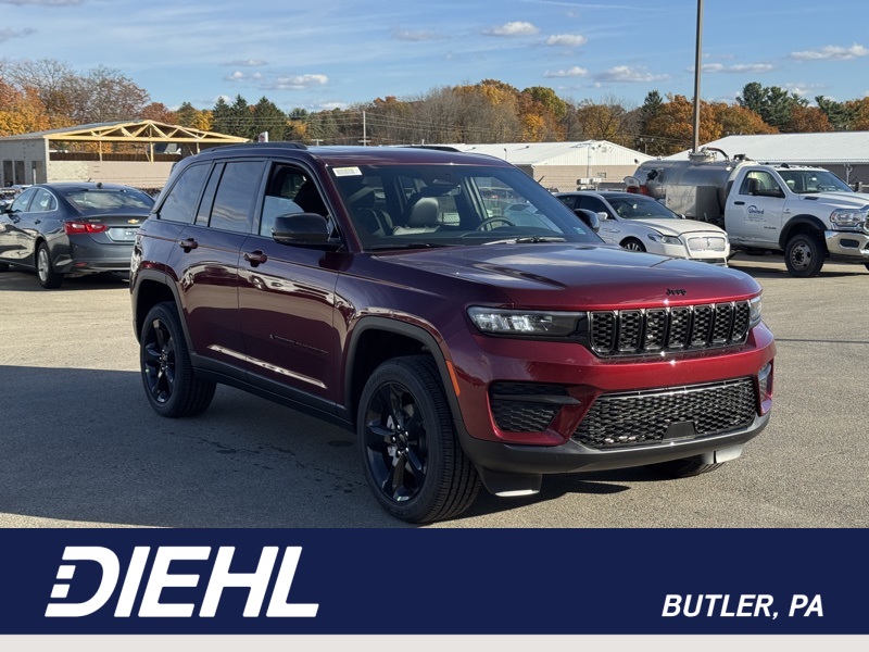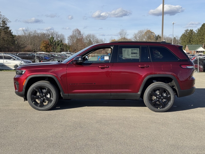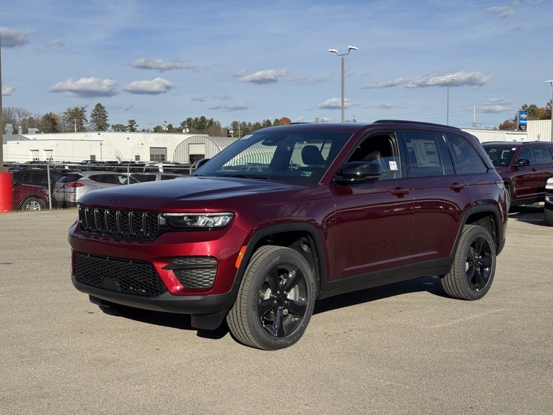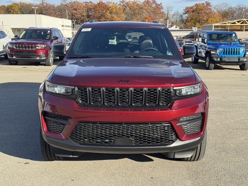 4WD, ABS brakes, Active Cruise Control, Alloy wheels, Compass, Electronic Stability Control, Emergency communication system, Front dual zone A/C, Heated door mirrors, Illuminated entry, Low tire pressure warning, ParkView Rear Back-Up Camera, Remote keyless entry, Traction control, 4-Wheel Disc Brakes, 6 Speakers, Air Conditioning, AM/FM radio: SiriusXM, Anti-whiplash front head restraints, Automatic temperature control, Brake assist, Bumpers: body-color, Cloth Seats, Delay-off headlights, Driver door bin, Driver vanity mirror, Dual front impact airbags, Dual front side impact airbags, Four wheel independent suspension, Front anti-roll bar, Front Bucket Seats, Front Center Armrest w/Storage, Front reading lights, Fully automatic headlights, Knee airbag, Normal Duty Suspension, Occupant sensing airbag, Outside temperature display, Overhead airbag, Overhead console, Panic alarm, Passenger door bin, Passenger vanity mirror, Power door mirrors, Power driver seat, Power steering, Power windows, Radio data system, Radio: Uconnect 5 w/8.4" Display, Rear anti-roll bar, Rear reading lights, Rear window defroster, Rear window wiper, Security system, Speed control, Speed-Sensitive Wipers, Split folding rear seat, Spoiler, Steering wheel mounted audio controls, Tachometer, Telescoping steering wheel, Tilt steering wheel, Trip computer, Variably intermittent wipers, Voltmeter, and Wheels: 17" x 6.5" Fully Painted Aluminum. 4WD, ABS brakes, Active Cruise Control, Alloy wheels, Compass, Electronic Stability Control, Emergency communication system, Front dual zone A/C, Heated door mirrors, Illuminated entry, Low tire pressure warning, ParkView Rear Back-Up Camera, Remote keyless entry, Traction control. Velvet Red Pearlcoat 2025 Jeep Grand Cherokee Altitude X 4WD 8-Speed Automatic 3.6L V6 24V VVT