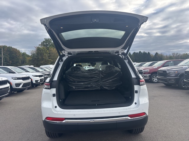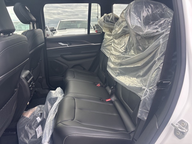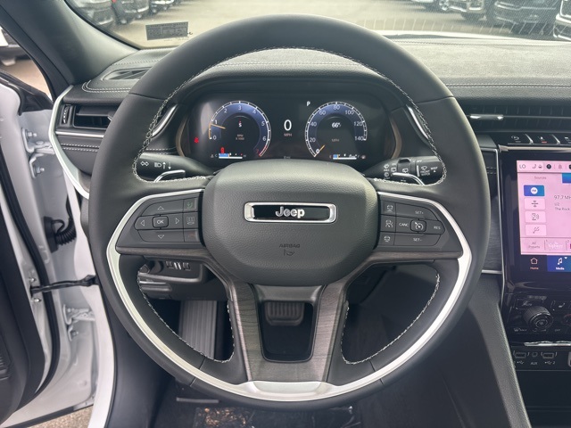 Quick Order Package 22E, 4WD, 4-Wheel Disc Brakes, 6 Speakers, ABS brakes, Active Noise Control System, Air Conditioning, Alloy wheels, AM/FM radio: SiriusXM with 360L, Anti-whiplash front head restraints, Audio memory, Auto High-beam Headlights, Automatic temperature control, Brake assist, Bumpers: body-color, Capri Leatherette Seats, Compass, Delay-off headlights, Driver door bin, Driver vanity mirror, Dual front impact airbags, Dual front side impact airbags, Dual-Pane Panoramic Sunroof, Electronic Stability Control, Emergency communication system, Four wheel independent suspension, Front anti-roll bar, Front Bucket Seats, Front Center Armrest w/Storage, Front dual zone A/C, Front fog lights, Front reading lights, Fully automatic headlights, Garage door transmitter, Heated door mirrors, Heated front seats, Heated rear seats, Heated steering wheel, Illuminated entry, Knee airbag, Low tire pressure warning, Memory seat, Model Year Tracking, Navigation System, Normal Duty Suspension, Occupant sensing airbag, Outside temperature display, Overhead airbag, Overhead console, Panic alarm, ParkView Rear Back-Up Camera, Passenger door bin, Passenger vanity mirror, Power door mirrors, Power driver seat, Power Liftgate, Power passenger seat, Power steering, Power windows, Radio data system, Radio: Uconnect 5 Nav w/10.1" Display, Rear anti-roll bar, Rear reading lights, Rear window defroster, Rear window wiper, Remote keyless entry, Security system, Speed control, Speed-Sensitive Wipers, Split folding rear seat, Spoiler, Steering wheel mounted audio controls, Tachometer, Telescoping steering wheel, Tilt steering wheel, Traction control, Trip computer, Turn signal indicator mirrors, Variably intermittent wipers, Voltmeter, Wheels: 18" x 8" Polished/Painted Aluminum, and Wheels: 20" x 8.5" Machined/Painted Aluminum. 4WD. Bright White Clearcoat 2025 Jeep Grand Cherokee Limited 4WD 8-Speed Automatic 3.6L V6 24V VVT
