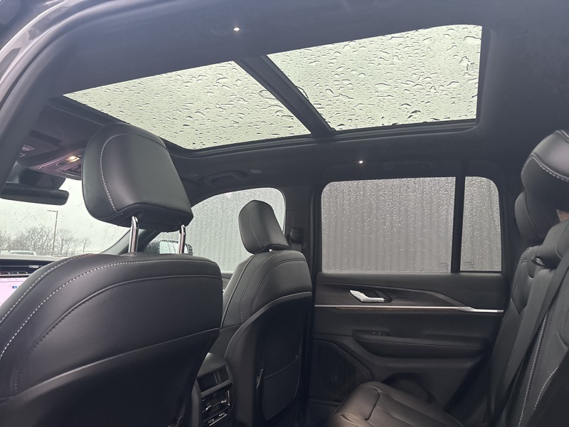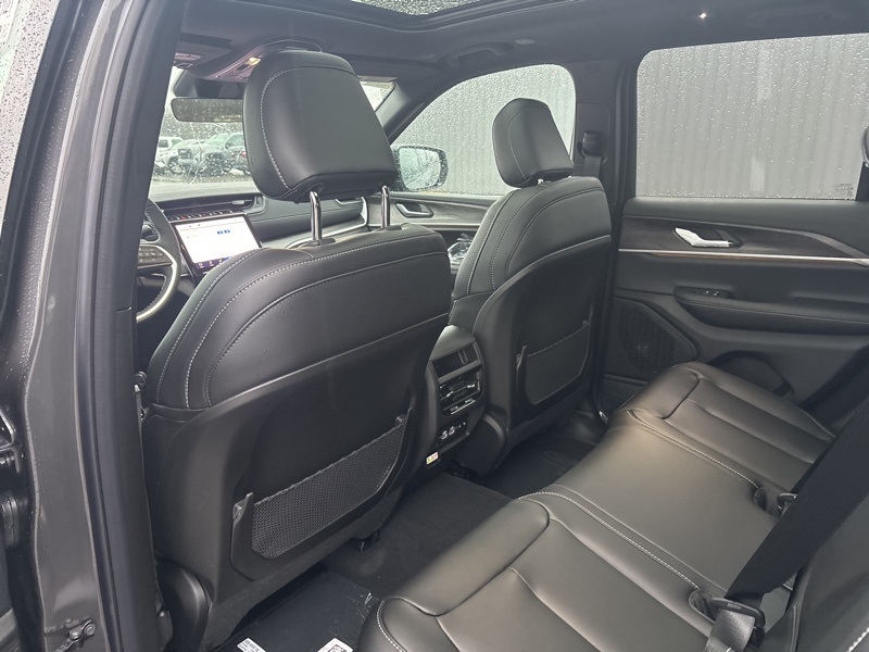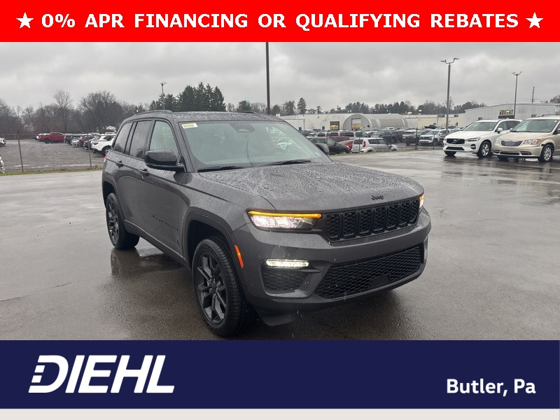 Blackout Model (Black Painted Roof, Delete Limited Badge, Dual-Pane Panoramic Sunroof, Gloss Black Exterior Accents, and Wheels: 20" x 8.5" Black Painted Aluminum), Quick Order Package 23E, Trailer Tow Package (220 Amp Alternator, 7 and 4-Pin Wiring Harness, Automatic Headlamp Levelling System, Class IV Receiver Hitch, Heavy-Duty Engine Cooling, Rear Load Levelling Suspension, and Trailer Hitch Zoom), 4WD, 4-Wheel Disc Brakes, 6 Speakers, ABS brakes, Active Noise Control System, Air Conditioning, Alloy wheels, AM/FM radio: SiriusXM with 360L, Anti-whiplash front head restraints, Audio memory, Auto High-beam Headlights, Automatic temperature control, Brake assist, Bumpers: body-color, Capri Leatherette Seats, Compass, Delay-off headlights, Driver door bin, Driver vanity mirror, Dual front impact airbags, Dual front side impact airbags, Electronic Stability Control, Emergency communication system, Four wheel independent suspension, Front anti-roll bar, Front Bucket Seats, Front Center Armrest w/Storage, Front dual zone A/C, Front fog lights, Front reading lights, Fully automatic headlights, Garage door transmitter, Heated door mirrors, Heated front seats, Heated rear seats, Heated steering wheel, Illuminated entry, Knee airbag, Low tire pressure warning, Memory seat, Model Year Tracking, Navigation System, Normal Duty Suspension, Occupant sensing airbag, Outside temperature display, Overhead airbag, Overhead console, Panic alarm, ParkView Rear Back-Up Camera, Passenger door bin, Passenger vanity mirror, Power door mirrors, Power driver seat, Power Liftgate, Power passenger seat, Power steering, Power windows, Radio data system, Radio: Uconnect 5 Nav with 10.1" Display, Rear anti-roll bar, Rear reading lights, Rear window defroster, Rear window wiper, Remote keyless entry, Security system, Speed control, Speed-Sensitive Wipers, Split folding rear seat, Spoiler, Steering wheel mounted audio controls, Tachometer, Telescoping steering wheel, Tilt steering wheel, Traction control, Trip computer, Turn signal indicator mirrors, Variably intermittent wipers, Voltmeter, and Wheels: 18" x 8" Polished/Painted Aluminum. 4WD. Baltic Gray Metallic Clearcoat 2025 Jeep Grand Cherokee Limited 4WD 8-Speed Automatic 3.6L V6 24V VVT