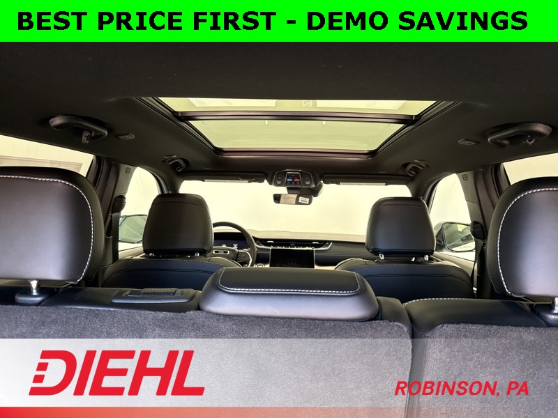 Step inside and it’s clear: this isn’t just another SUV. Heated front and second-row leather seats, a heated steering wheel, dual-zone climate control, and that panoramic sunroof make every drive feel like an upgrade. The 10.1-inch Uconnect touchscreen with navigation, Apple CarPlay, and Android Auto keeps you connected without distraction, while the premium sound system makes traffic jams feel more like concerts.