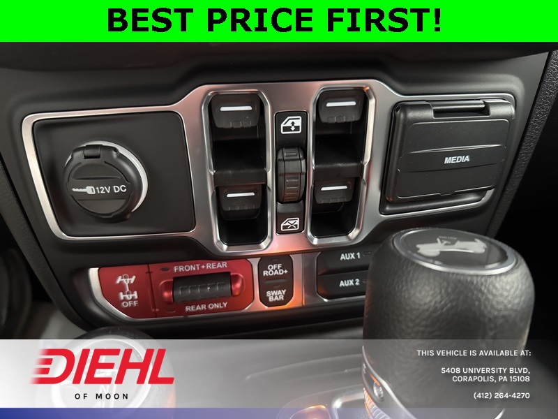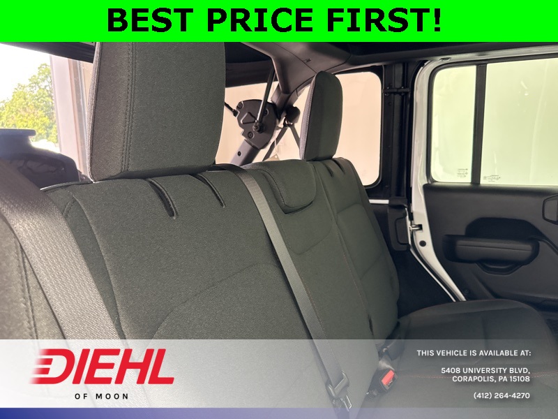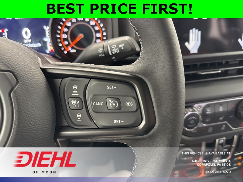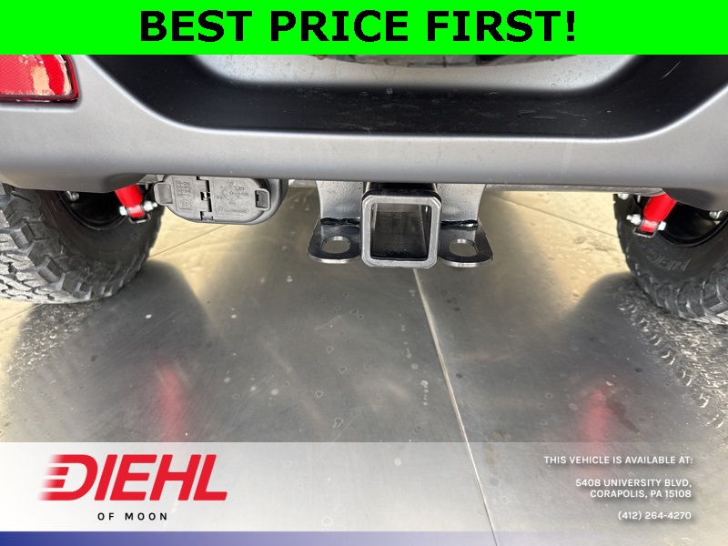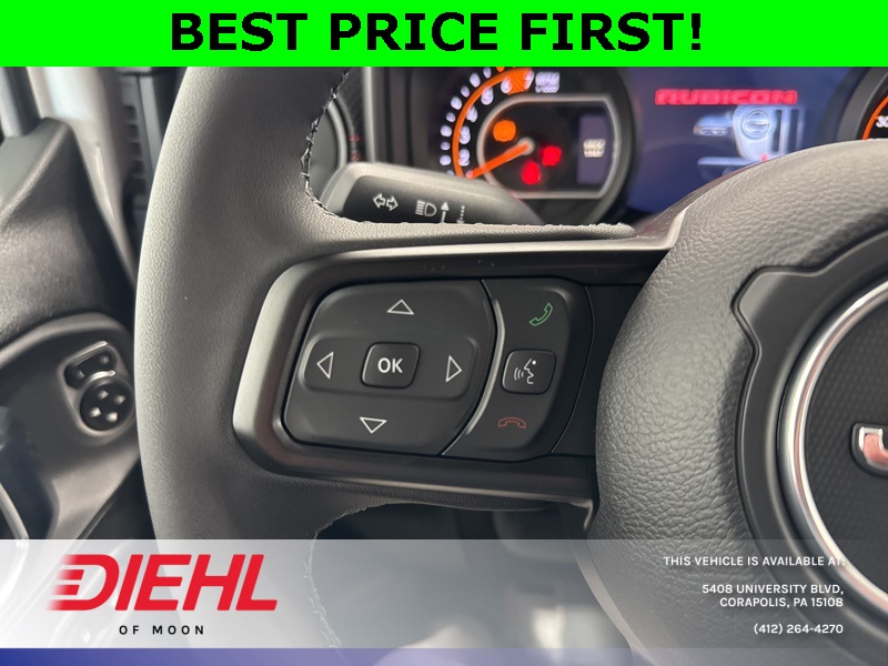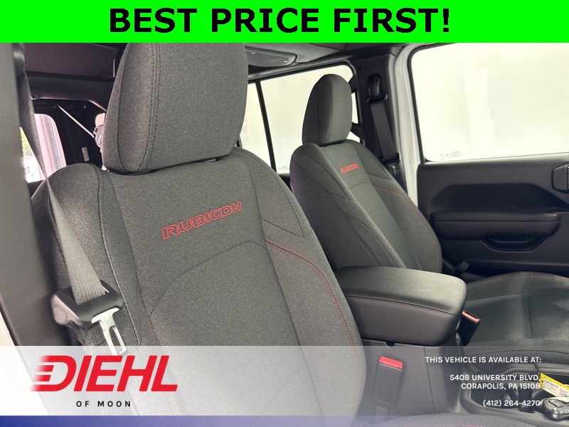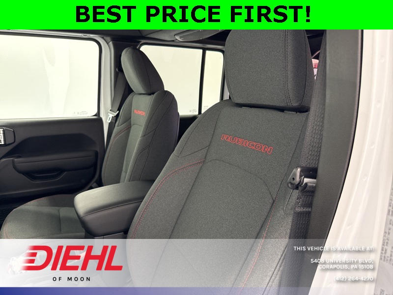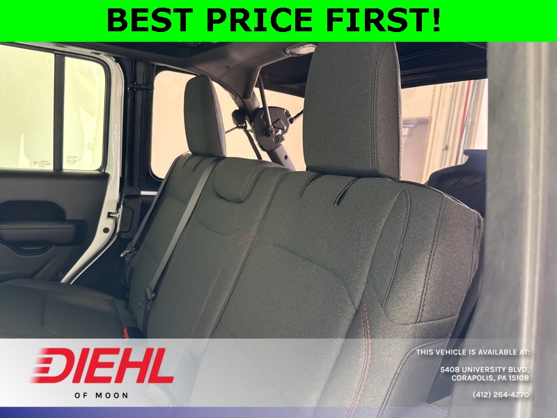 Welcome to the top of the Jeep food chain. The 2025 Jeep Wrangler 4-Door Rubicon 4x4 is more than just a new SUV for sale near Pittsburgh its an all-terrain war machine disguised as a daily driver. Available now at Diehl Chrysler Dodge Jeep Ram in Moon Township, PA, this Bright White beast is ready to crawl rocks, ford rivers, and conquer commutes with the same energy.Under the hood? The tried-and-true 3.6L V6 engine with Stop/Start, paired with an 8-speed automatic transmission. But this isnt your average Wrangler this is the Rubicon, which means youre rolling with a 4:1 Rock-Trac heavy-duty part-time 4WD system, third-gen Dana 44 front axle, and full-float Dana M220 rear axle. Tru-Lok front and rear lockers. Performance suspension. Off-road plus mode. Its not trail-rated by accident its trail-built by obsession.Inside, its high-tech meets high ground clearance. A massive 12.3-inch Uconnect touchscreen, Apple CarPlay, Android Auto, Jeep Connect trial services, SiriusXM, a Wi-Fi hotspot, and premium soft-touch surfaces make sure your roughest rides are still comfortably connected. Heated front seats, heated steering wheel, and remote start? Standard on this monster thanks to the Customer Preferred Package 24R.And because style still matters when youre blasting through mud, this Wrangler Rubicon comes with a premium black Sunrider soft top, 17-inch black machined wheels, and LT285/70R17C off-road tires that bite harder than your ex's lawyer. LED premium reflector headlamps, LED fogs, tail lamps, and signature accents make sure you're seen even when youre ghosting civilization deep in the woods.Safetys covered too. Full-speed forward collision warning, adaptive cruise with stop, rear backup camera, blind-spot detection, and enough airbags to make your insurance agent blush.Priced at $59,805 and backed by Jeeps 5-year/60,000-mile powertrain warranty, this 2025 Jeep Wrangler Rubicon 4x4 is the ultimate weapon for Western PA explorers. Whether you're crawling in Connellsville or hitting potholes like moguls in Robinson, this Wrangler is built to dominate.Come test drive the 2025 Rubicon at Diehl Jeep in Moon Township minutes from Pittsburgh, and miles beyond ordinary. But move fast. Rubicons dont sit still for long... and neither should you.
