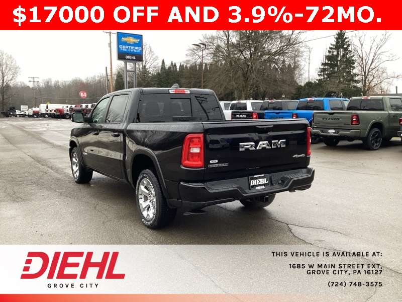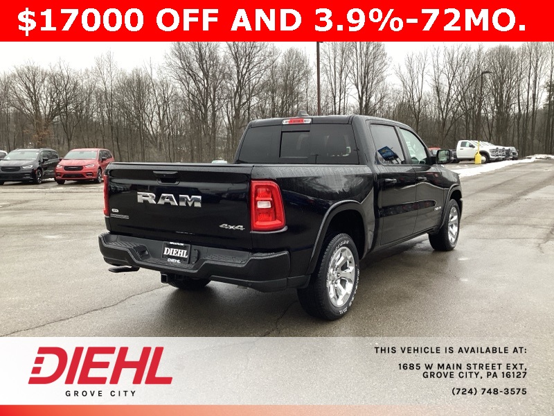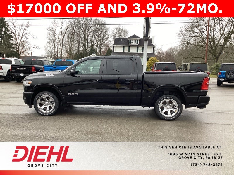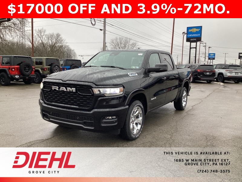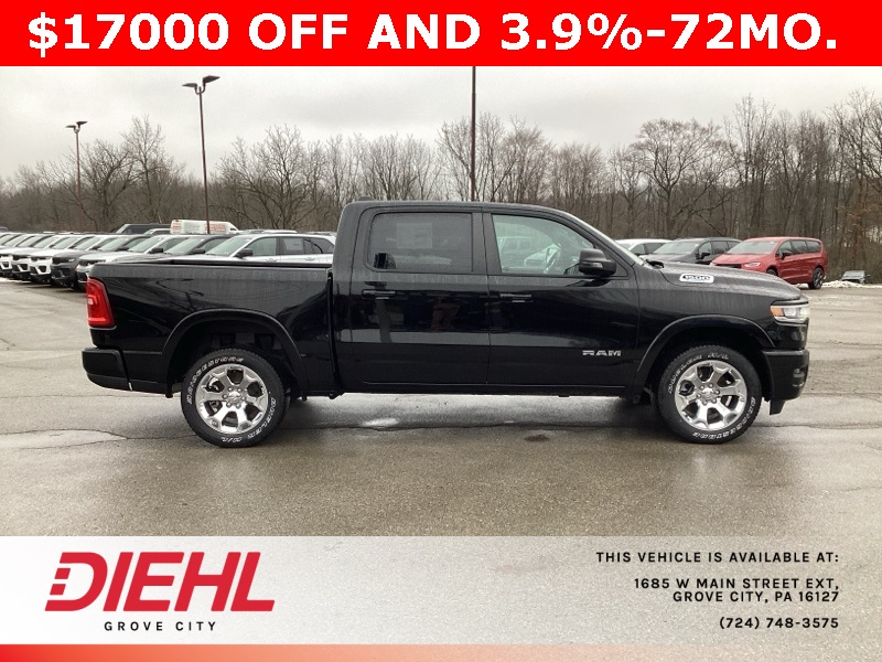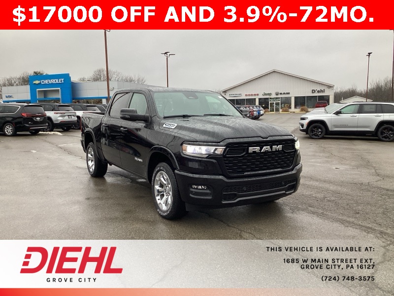 Diamond Black Crystal Pearlcoat 2025 1500 Ram Big Horn/Lone Star 4D Crew Cab 4WD 8-Speed Automatic 3.6L V6 24V VVT Price includes: $2000 - 2025 National SFS Lease Loyalty Bonus Cash. Exp. 03/02/2026 $2000 - 2025 National Select Inventory Bonus Cash. Exp. 03/02/2026