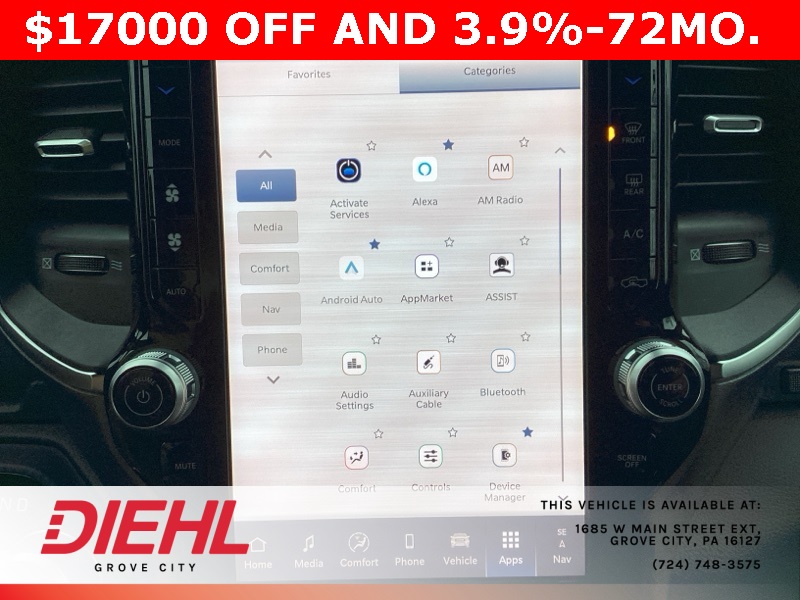Diehl Automotive utilizes a system that generates market value pricing automatically for new and pre-owned vehicles and may cause errors, inaccuracies, or omissions. Some aftermarket additions or accessories may not be displayed properly. For accuracy, please contact the dealer for real-time, accurate pricing. A documentation fee of $490 applies and is not included in the pricing. Tax, title, and tags are also not included and must be paid by the purchaser. Some prices may include manufacturer-to-dealer offers that are not compatible with manufacturer special finance programs and/or lease offers. While great effort is made to ensure the accuracy of the information on this site, errors do occur, so please verify information with a customer service representative. This is easily done by calling us or by visiting us at the dealership.
