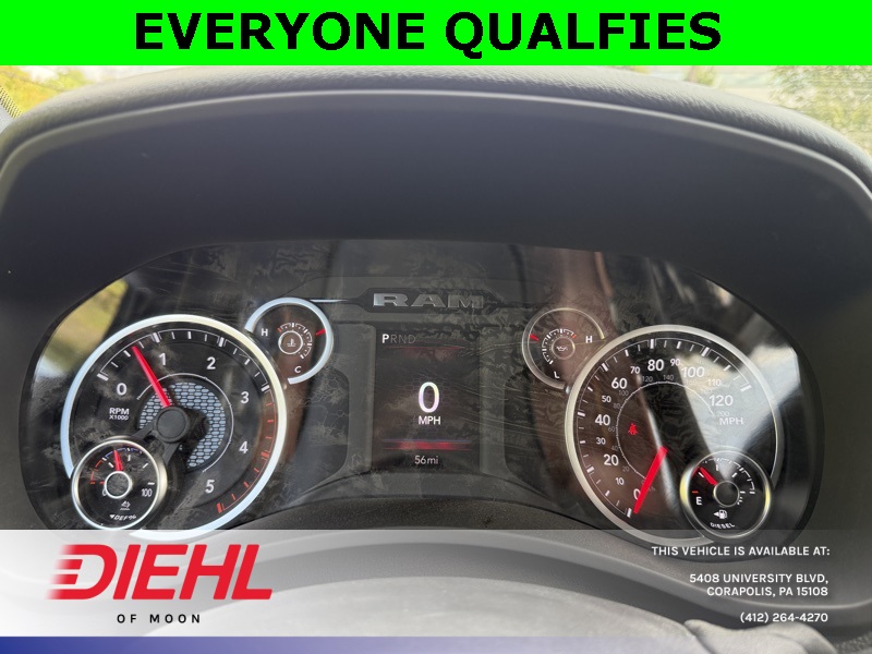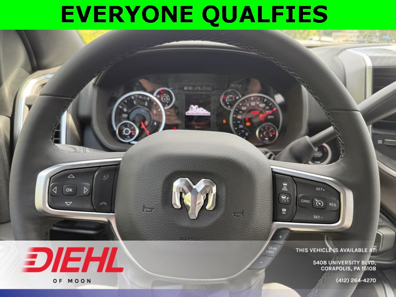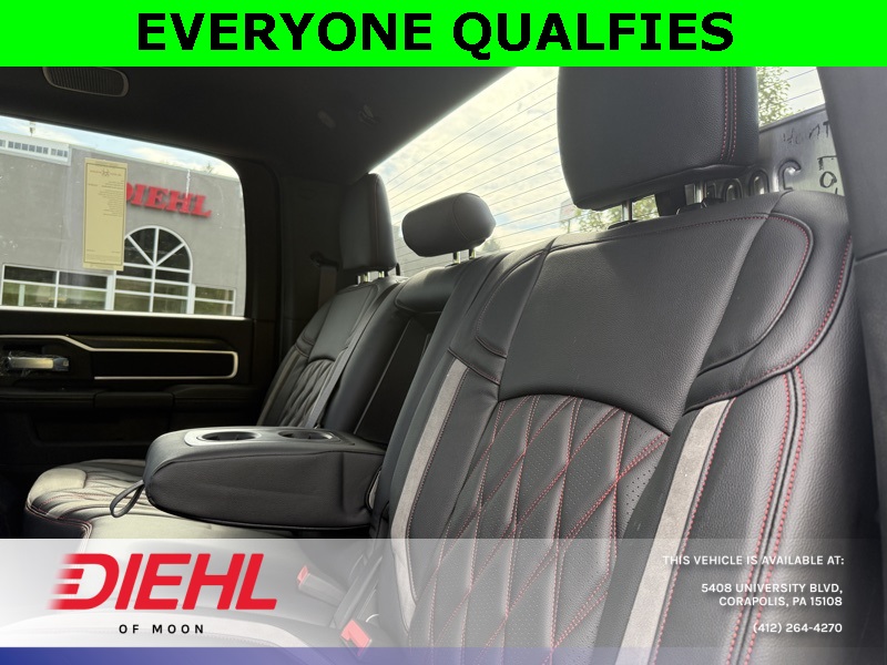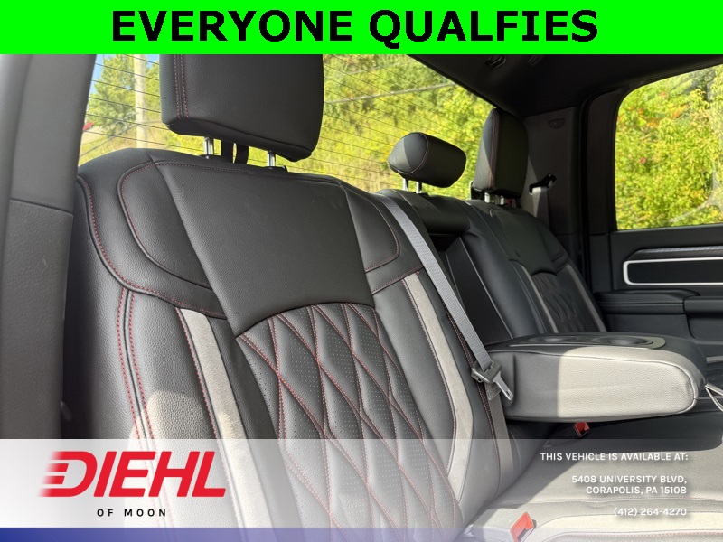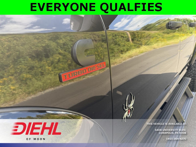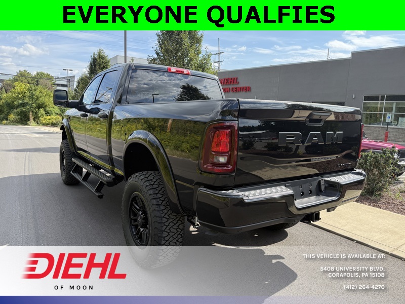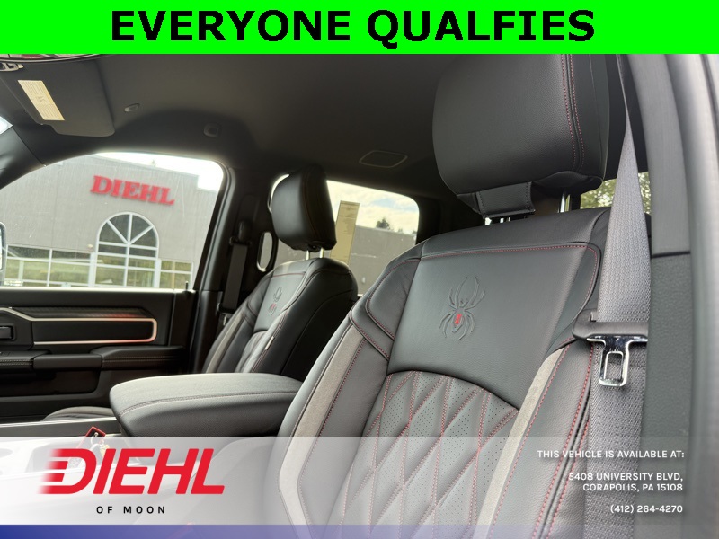 If you've been hunting for a truck that looks like it just bench-pressed a bulldozer and then polished its boots, meet the 2025 Ram 2500 Big Horn Crew Cab Black Widow Edition. This beast, available now at Diehl of Moon, blends legendary Ram strength with the sinister swagger of a Black Widow custom upfit. Cloaked in Diamond Black Crystal Pearl-Coat paint and wearing 20-inch black off-road wheels wrapped in 37-inch premium all-terrain tires, this heavy-duty pickup doesn't just roll into Pittsburgh.. it owns the road like its auditioning for a superhero film.Under the hood, the 6.7L Cummins Turbo Diesel engine flexes its muscle with the kind of torque that makes towing a yacht feel like pulling a wagon. Paired with an 8-speed automatic transmission, its smooth when you want it and ferocious when you need it. A 4-inch suspension lift system elevates your game,literally, giving you commanding views of Moon Township traffic while letting everyone else know they're in the presence of greatness. Add power running boards, body-color smooth fender flares, and Black Widow badging, and you've got a truck that's as much a lifestyle statement as it is a workhorse.Inside, custom leather seating, red LED interior lighting, and a 12-inch Uconnect touchscreen with navigation and Harman Kardon sound make this rig part luxury lounge, part command center. Whether you're hauling gear, heading to the job site, or cruising the backroads of Western PA, you'll appreciate the heated seats, all-weather floor mats, and safety tech that keeps confidence as high as the lift kit.If you're searching for the best new truck deals near Moon Township PA or a Ram 2500 dealership in Western PA that delivers pure power with premium style, your search ends here. The 2025 Ram 2500 Big Horn Black Widow is not just for sale in Pittsburgh, its waiting to conquer it. Come see us today at Diehl of Moon and take the test drive that might just ruin you for every other truck on the planet.Disclaimer:New vehicle pricing includes all offers and incentives. Tax, Title and Tags not included in vehicle prices shown and must be paid by the purchaser. While great effort is made to ensure the accuracy of the information on this site, errors do occur so please verify information with a customer service rep. This is easily done by calling us at (412)-264-4270 or by visiting us at the dealership.All pricing and details are believed to be accurate, but we do not warrant or guarantee such accuracy. The prices shown above, may vary from region to region, as will incentives, and are subject to change. Vehicle information is based off standard equipment and may vary from vehicle to vehicle. Call or email for complete vehicle specific information. Price includes: $2000 - 2025 National Bonus Cash . Exp. 09/30/2025 $2,000 - Exp. 10/01/2025 Price includes $22,393 of dealer added accessories.