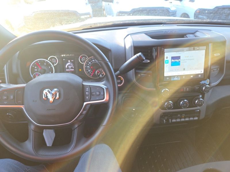 Inside, the 40/20/40 split bench seat layout includes a front armrest with cupholders, front center armrest with storage, and manual 4-way driver and passenger seats. Uconnect 5 with an 8.4-inch display supports Apple CarPlay, Google Android Auto, SiriusXM radio service, integrated voice command with Bluetooth, a remote USB charge-only port, and a 4G LTE Wi-Fi hot spot.