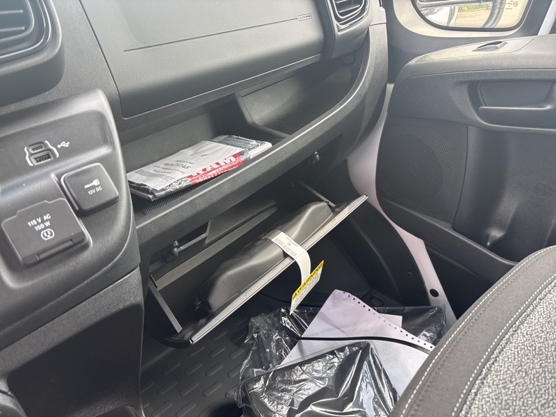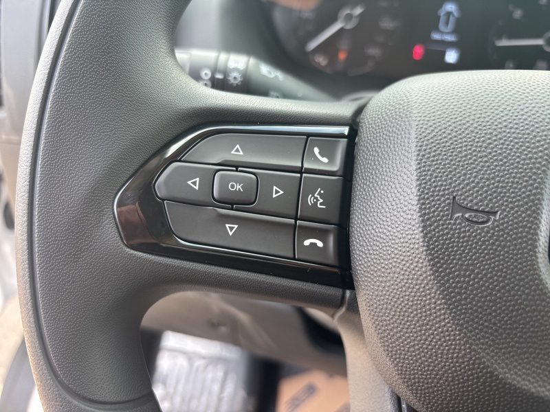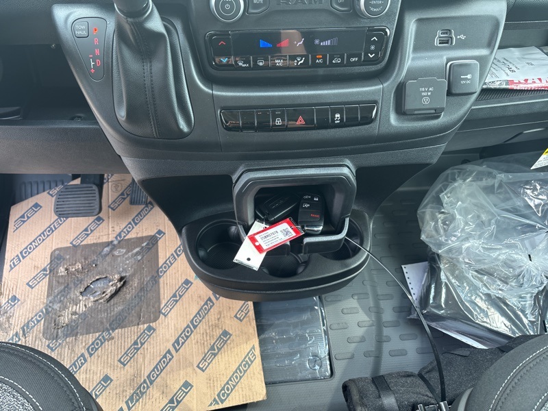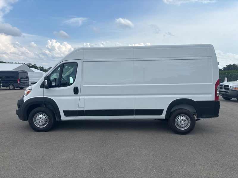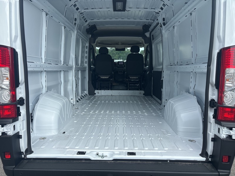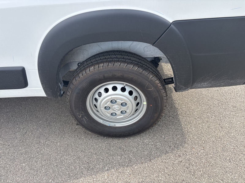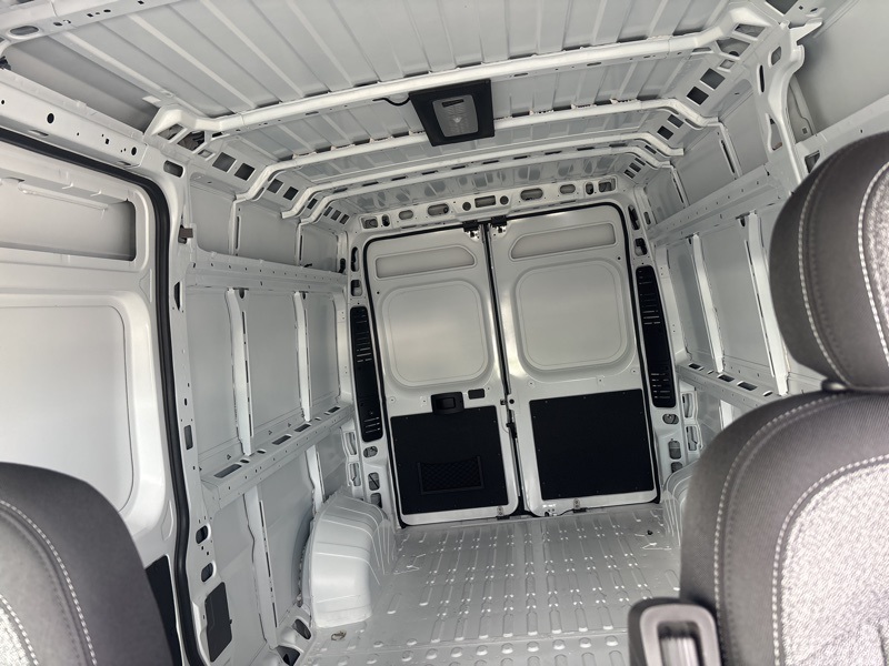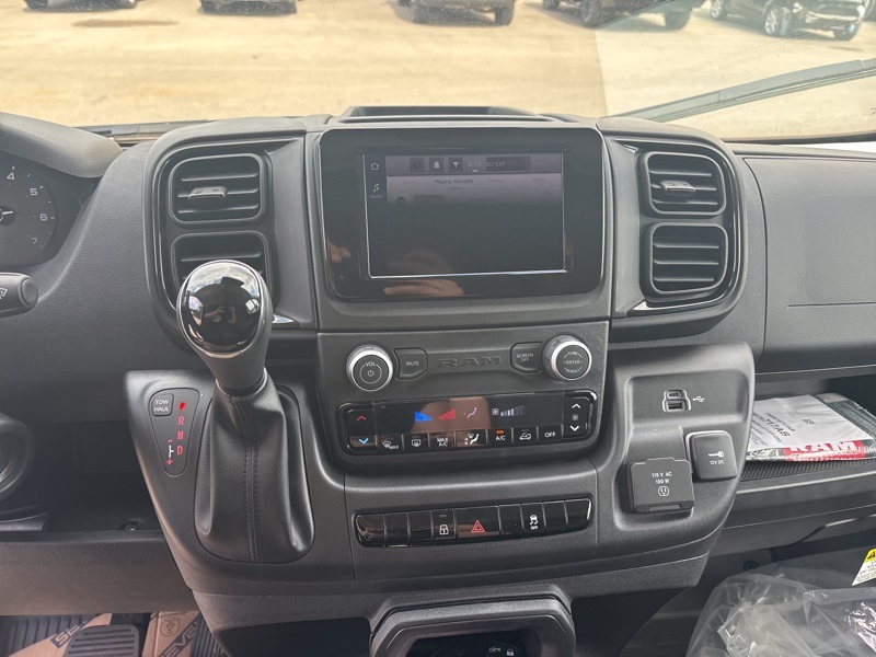 Convenience Group (Exterior Mirrors w/Heating Element, Exterior Mirrors w/Supplemental Signals, Front Fog Lamps, Power Adjust Mirrors, Power Folding/Heated Mirrors, Power-Adjustable Convex Aux Mirrors, Power-Folding Mirrors, and Rear Cargo LED Lamp), Power Group (100 Amp Battery, 115V Auxiliary Power Outlet, and 12V Rear Auxiliary Power Outlet), Quick Order Package 22B Tradesman w/Pass Seat (4-Way Manual Adjust Front Passenger Seat and Passenger Bucket Seat), Storage Group (Cargo Net, Shelf Above Roof Trim, and Underseat Storage Tray), 4 Speakers, 4-Wheel Disc Brakes, 4.08 Axle Ratio, 4G LTE Wi-Fi Hotspot, ABS brakes, Adaptive Cruise Control w/Stop & Go, Air Conditioning, AM/FM radio: SiriusXM, Apple CarPlay, Apple CarPlay/Android Auto, Black/Gray Seats, Bodyside moldings, Brake assist, Class IV Receiver Hitch, Cloth Bucket Seats, Connectivity - US/Canada, Driver door bin, Driver Seat Armrest, Driver's Seat Mounted Armrest, Electronic Stability Control, For Details, Visit DriveUconnect.com, For More Info, Call 800-643-2112, Front anti-roll bar, Front Bucket Seats, Front License Plate Bracket, Front reading lights, Front wheel independent suspension, Global Telematics Box Module (TBM), Google Android Auto, GPS Antenna Input, Heavy Duty Suspension, Illuminated entry, Low tire pressure warning, Outside temperature display, Overhead airbag, Overhead console, ParkSense Rear Park Assist System, ParkView Rear Back-Up Camera, Passenger door bin, Power steering, Power windows, Radio: Uconnect 5 w/7" Display, Remote keyless entry, SiriusXM Radio Service, Steering wheel mounted audio controls, Tachometer, Telescoping steering wheel, Traction control, Trip computer, Turn signal indicator mirrors, Variably intermittent wipers, Wheel Center Cap, and Wheels: 16" x 6.0" SteeL. Bright White Clearcoat 2025 Ram ProMaster 2500 High Roof FWD 9-Speed 948TE Automatic 3.6L V6 24V VVT