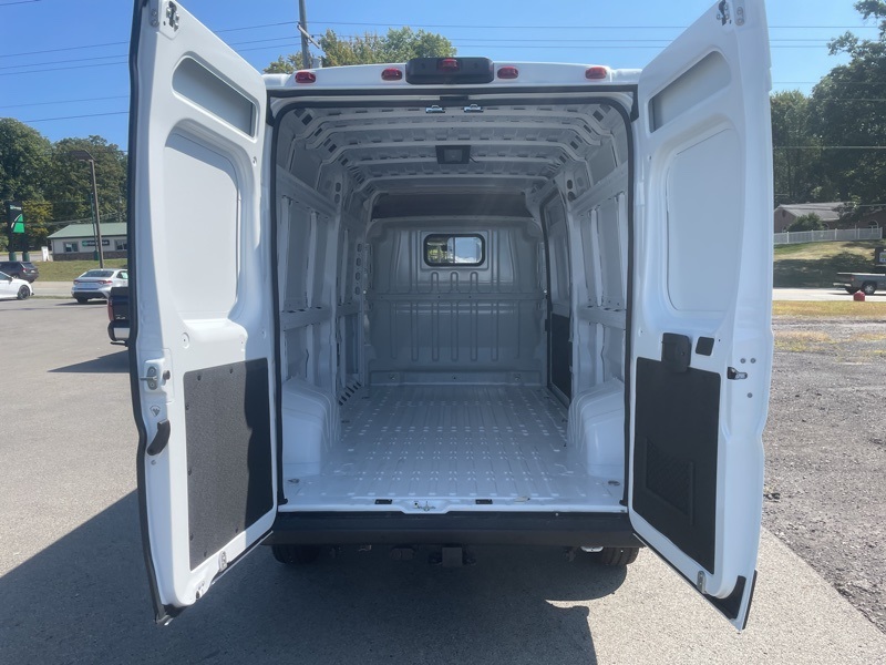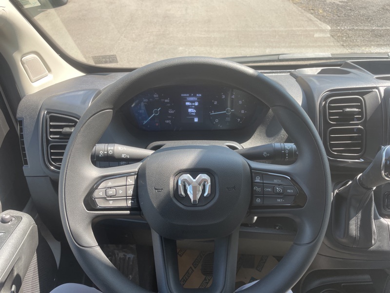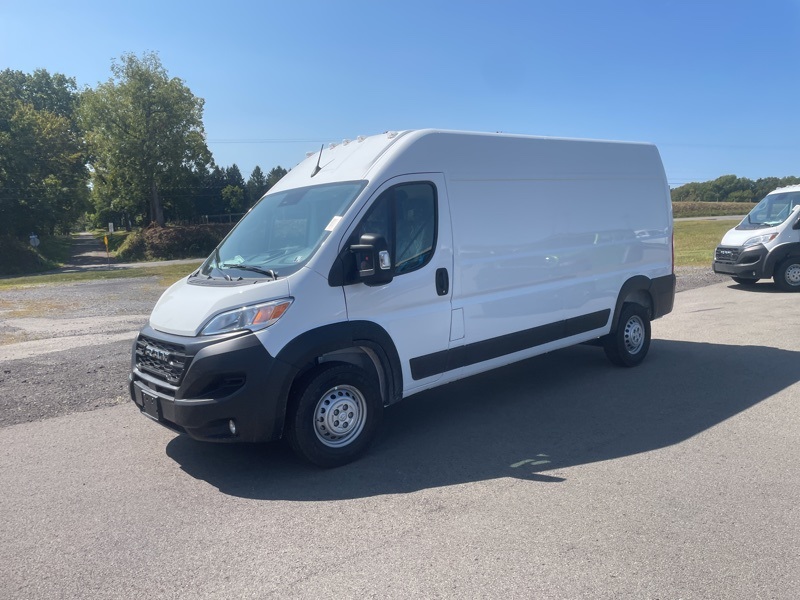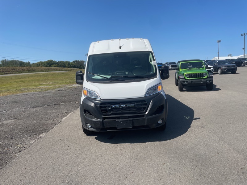 Convenience Group (Exterior Mirrors w/Heating Element, Exterior Mirrors w/Supplemental Signals, Front Fog Lamps, Power Adjust Mirrors, Power Folding/Heated Mirrors, Power-Adjustable Convex Aux Mirrors, Power-Folding Mirrors, and Rear Cargo LED Lamp), Power Group (100 Amp Battery, 115V Auxiliary Power Outlet, and 12V Rear Auxiliary Power Outlet), Quick Order Package 22B Tradesman w/Pass Seat (4-Way Manual Adjust Front Passenger Seat and Passenger Bucket Seat), Storage Group (Cargo Net, Shelf Above Roof Trim, and Underseat Storage Tray), 4 Speakers, 4-Wheel Disc Brakes, 4.08 Axle Ratio, 4G LTE Wi-Fi Hotspot, ABS brakes, Adaptive Cruise Control w/Stop & Go, Air Conditioning, AM/FM radio: SiriusXM, Apple CarPlay, Apple CarPlay/Android Auto, Black/Gray Seats, Bodyside moldings, Brake assist, Cargo Partition w/Sliding Window, Class IV Receiver Hitch, Cloth Bucket Seats, Connectivity - US/Canada, Driver door bin, Driver Seat Armrest, Driver's Seat Mounted Armrest, Electronic Stability Control, For Details, Visit DriveUconnect.com, For More Info, Call 800-643-2112, Front anti-roll bar, Front Bucket Seats, Front License Plate Bracket, Front reading lights, Front wheel independent suspension, Global Telematics Box Module (TBM), Google Android Auto, GPS Antenna Input, Heavy Duty Suspension, Illuminated entry, Low tire pressure warning, Outside temperature display, Overhead airbag, Overhead console, ParkSense Rear Park Assist System, ParkView Rear Back-Up Camera, Passenger door bin, Passenger Double Seat, Power steering, Power windows, Radio: Uconnect 5 w/7" Display, Remote keyless entry, SiriusXM Radio Service, Steering wheel mounted audio controls, Tachometer, Telescoping steering wheel, Traction control, Trip computer, Turn signal indicator mirrors, Variably intermittent wipers, Wheel Center Cap, and Wheels: 16" x 6.0" SteeL. Bright White Clearcoat 2025 Ram ProMaster 2500 High Roof FWD 9-Speed 948TE Automatic 3.6L V6 24V VVT
