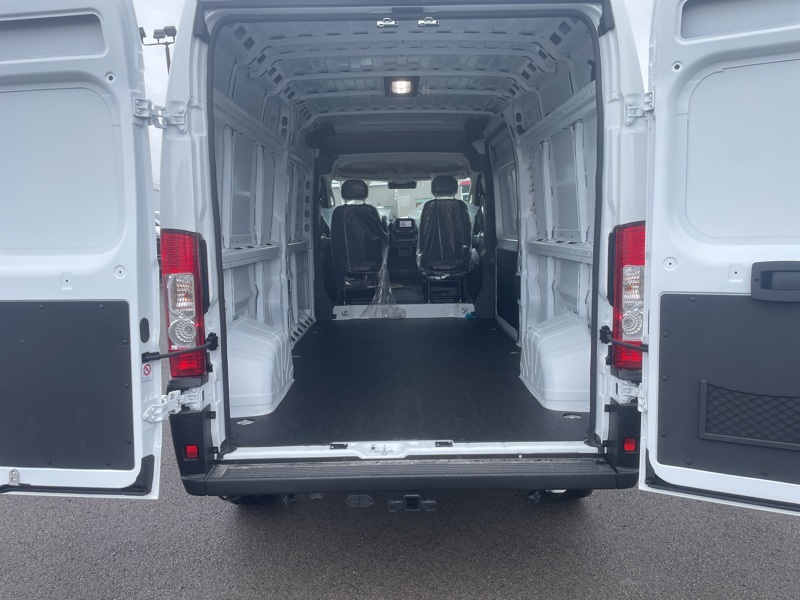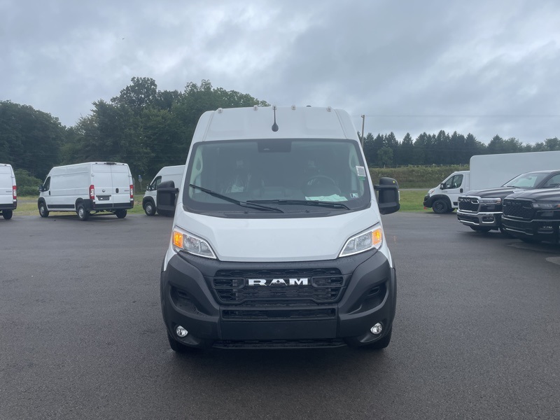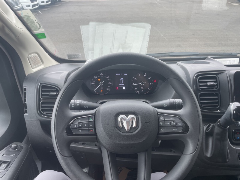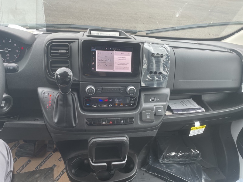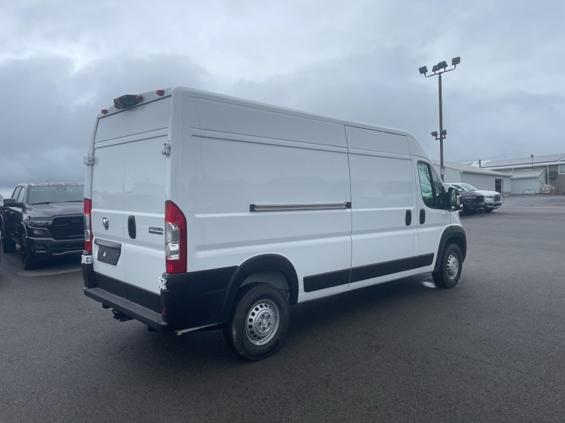 Convenience Group (Exterior Mirrors w/Heating Element, Exterior Mirrors w/Supplemental Signals, Front Fog Lamps, Power Adjust Mirrors, Power Folding/Heated Mirrors, Power-Adjustable Convex Aux Mirrors, Power-Folding Mirrors, and Rear Cargo LED Lamp), Power Group (100 Amp Battery, 115V Auxiliary Power Outlet, and 12V Rear Auxiliary Power Outlet), Quick Order Package 22B Tradesman w/Pass Seat (4-Way Manual Adjust Front Passenger Seat and Passenger Bucket Seat), Storage Group (Cargo Net, Shelf Above Roof Trim, and Underseat Storage Tray), 4 Speakers, 4-Wheel Disc Brakes, 4.08 Axle Ratio, 4G LTE Wi-Fi Hotspot, ABS brakes, Adaptive Cruise Control w/Stop & Go, Air Conditioning, AM/FM radio: SiriusXM, Apple CarPlay, Apple CarPlay/Android Auto, Black/Gray Seats, Bodyside moldings, Brake assist, Class IV Receiver Hitch, Cloth Bucket Seats, Connectivity - US/Canada, Driver door bin, Driver Seat Armrest, Driver's Seat Mounted Armrest, Electronic Stability Control, For Details, Visit DriveUconnect.com, For More Info, Call 800-643-2112, Front anti-roll bar, Front Bucket Seats, Front reading lights, Front wheel independent suspension, Global Telematics Box Module (TBM), Google Android Auto, GPS Antenna Input, Heavy Duty Suspension, Illuminated entry, Low tire pressure warning, MOPAR Cargo Compartment Floor Mat, Outside temperature display, Overhead airbag, Overhead console, ParkView Rear Back-Up Camera, Passenger door bin, Power steering, Power windows, Radio: Uconnect 5 w/7" Display, Remote keyless entry, SiriusXM Radio Service, Steering wheel mounted audio controls, Tachometer, Telescoping steering wheel, Traction control, Trip computer, Turn signal indicator mirrors, Variably intermittent wipers, Wheel Center Cap, and Wheels: 16" x 6.0" SteeL. Bright White Clearcoat 2025 Ram ProMaster 2500 High Roof FWD 9-Speed 948TE Automatic 3.6L V6 24V VVT