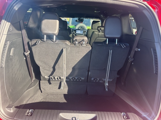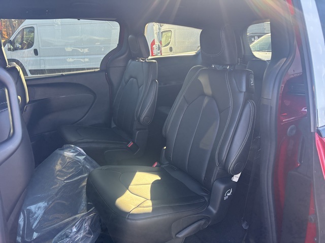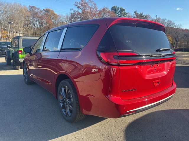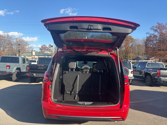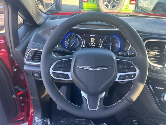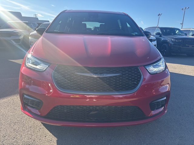 100th Anniversary Buzz Model Package (100th Anniversary Buzz Model Graphic, Black Day Light Opening Moldings, Granite Crystal Exterior Accents, Granite Crystal Exterior Badging, Premium Fascia-Upper/Lower Grilles/Granite Crystal, Premium Rear Fascia Granite Crystal, and Wheels: 20" x 7.5" Luster Gray Aluminum), Quick Order Package 27L, Safety Sphere (360 Surround View Camera System), 10.1" Touchscreen Display, 18" x 7.5" Painted Aluminum Wheels, 3.73 Axle Ratio, 3rd row seats: split-bench, 4-Wheel Disc Brakes, 4G LTE Wi-Fi Hot Spot, 6 Speakers, ABS brakes, Air Conditioning, Alloy wheels, AM/FM radio: SiriusXM, Apple CarPlay, Apple CarPlay/Android Auto, Auto-dimming Rear-View mirror, Automatic temperature control, AWD Suspension, Black Seats, Brake assist, Bumpers: body-color, Caprice Leatherette Bucket Seats, Compass, Connectivity - US/Canada, Delay-off headlights, Disassociated Touchscreen Display, Driver door bin, Driver vanity mirror, Driver's Seat Mounted Armrest, Dual front impact airbags, Dual front side impact airbags, Electronic Stability Control, Emergency communication system: Chrysler Connect, For Details, Visit DriveUconnect.com, Four wheel independent suspension, Front anti-roll bar, Front Bucket Seats, Front dual zone A/C, Front fog lights, Front reading lights, Fully automatic headlights, Garage door transmitter, Google Android Auto, GPS Antenna Input, Heated door mirrors, Heated front seats, Heated steering wheel, Illuminated entry, Integrated Active Noise Cancellation, Integrated Center Stack Radio, Knee airbag, Low tire pressure warning, Memory seat, Occupant sensing airbag, Outside temperature display, Overhead airbag, Overhead console, Panic alarm, ParkView Rear Back-Up Camera, Passenger door bin, Passenger seat mounted armrest, Passenger vanity mirror, Power door mirrors, Power driver seat, Power Liftgate, Power steering, Power windows, Radio data system, Rain sensing wipers, Rear air conditioning, Rear reading lights, Rear window defroster, Rear window wiper, Reclining 3rd row seat, Remote keyless entry, Security system, Speed control, Split folding rear seat, Spoiler, Steering wheel mounted audio controls, Tachometer, Telescoping steering wheel, Tilt steering wheel, Traction control, Trip computer, Turn signal indicator mirrors, USB Host Flip, Variably intermittent wipers, and VoltmeteR. Red Hot Pearlcoat 2026 Chrysler Pacifica Select AWD 9-Speed 948TE Automatic 3.6L V6 24V VVT