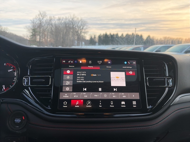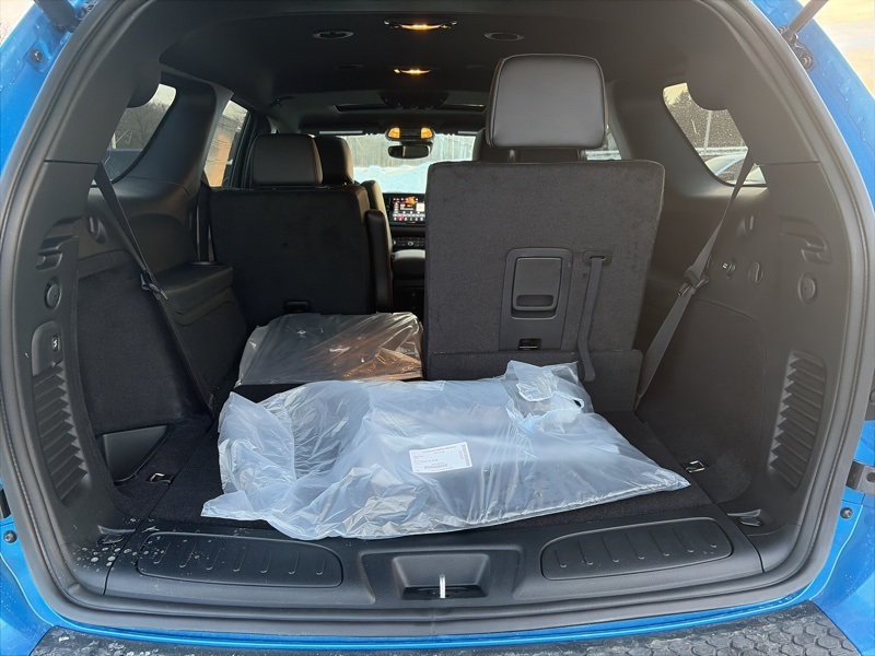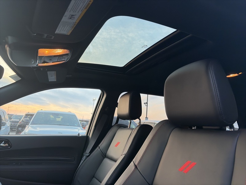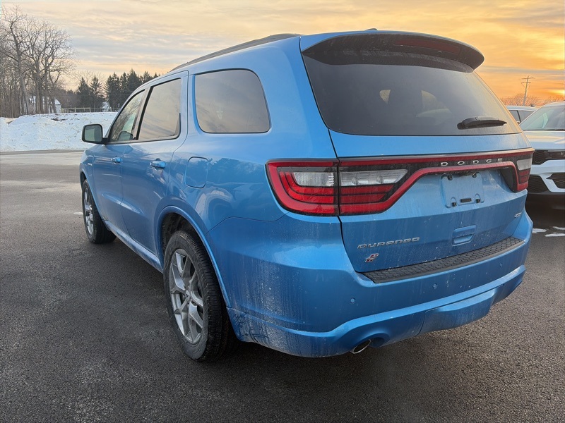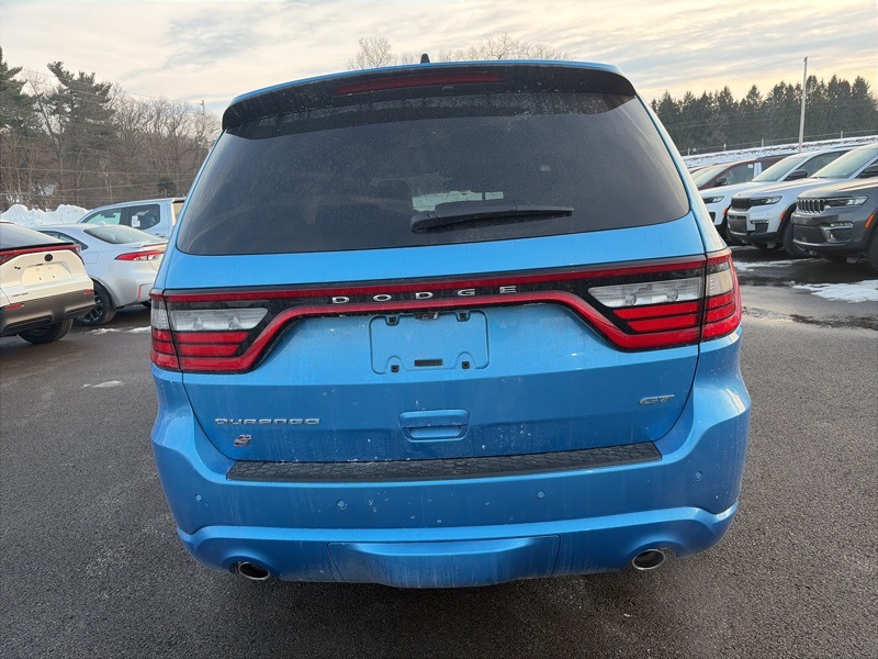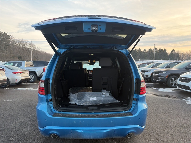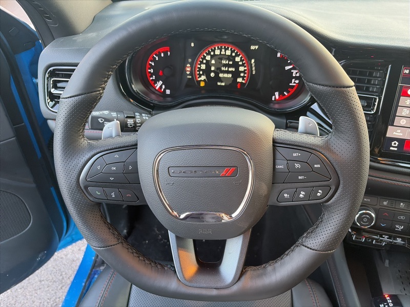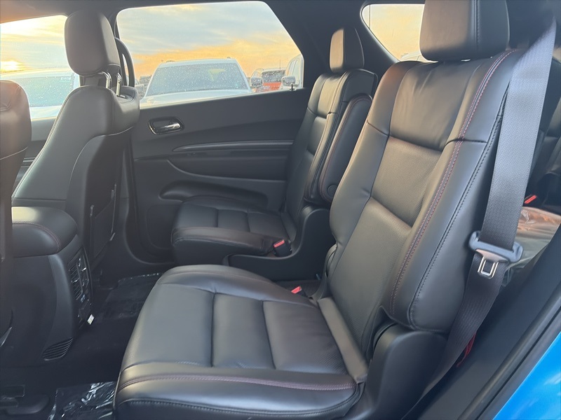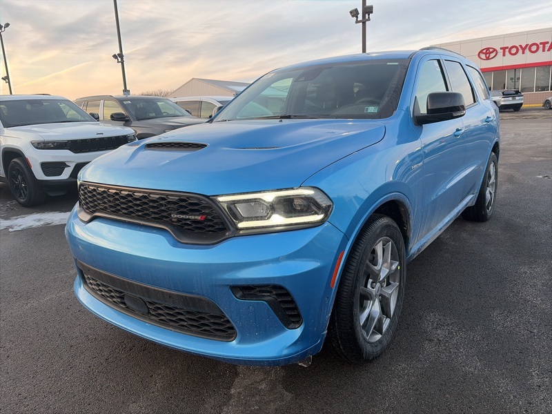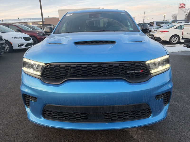 Quick Order Package 22T GT Plus (115V Auxiliary Power Outlet, 7 and 4 Pin Wiring Harness, Adaptive Cruise Control with Stop, Auto High Beam Headlamp Control, Auto-Dimming Exterior Driver Mirror, Black Roof Rails, Blind Spot with Trailer Detection, Class IV Receiver Hitch, Dual Remote USB Port - Charge Only, Exterior Mirrors with Heating Element, Exterior Mirrors with Memory, Exterior Mirrors with Supplemental Signals, Floor Console with Leather Armrest, Full Speed Forward Collision Warning Plus, Gloss Black Exterior Mirrors, Heated Second Row Seats, Integrated Roof Rail Crossbars, Leather Trimmed Bucket Seats, Leather Wrapped Door Panels, LED Auxiliary Low Beam and Turn Signal, Power 6x9 Multi-Function Foldaway Mirrors, Power 8-Way Driver Memory 8-Way Passenger Seats, Power Driver/Passenger 4-Way Lumbar Adjust, Power Sunroof, Power Tilt and Telescopic Steering Column, Radio/Driver Seat/Mirrors Memory, Red Accent Stitching, Trailer Brake Control, and Ventilated Front Seats), AWD, 2nd Row Fold/Tumble Captain Chairs, 2nd Row Mini Console with Cupholders, 2nd Row Seat Mounted Inboard Armrests, 3.09 Rear Axle Ratio, 3rd Row Floor Mat and Mini Console, 3rd row seats: split-bench, 4-Wheel Disc Brakes, 6-Passenger Seating, 9 Speakers, ABS brakes, Air Conditioning, Alloy wheels, AM/FM radio: SiriusXM w/360L, Apple CarPlay/Android Auto, Auto-dimming Rear-View mirror, Auto-leveling suspension, Automatic temperature control, Brake assist, Bumpers: body-color, Cloth Bucket Seats with Shift Insert, Compass, Delay-off headlights, Driver door bin, Driver vanity mirror, Dual front impact airbags, Dual front side impact airbags, Electronic Stability Control, Emergency communication system: Dodge Connect, Four wheel independent suspension, Front anti-roll bar, Front Bucket Seats, Front Center Armrest w/Storage, Front dual zone A/C, Front reading lights, Fully automatic headlights, Garage door transmitter, Heated door mirrors, Heated front seats, Heated steering wheel, Illuminated entry, Knee airbag, Leather steering wheel, Low tire pressure warning, Navigation System, Occupant sensing airbag, Outside temperature display, Overhead airbag, Overhead console, Panic alarm, ParkView Rear Back-Up Camera, Passenger door bin, Passenger vanity mirror, Power door mirrors, Power driver seat, Power Liftgate, Power steering, Power windows, Radio data system, Radio: Uconnect 5 Nav with 10.1" Display, Rain sensing wipers, Rear air conditioning, Rear anti-roll bar, Rear Load Leveling Suspension, Rear reading lights, Rear seat center armrest, Rear window defroster, Rear window wiper, Remote keyless entry, Security system, Speed control, Speed-sensing steering, Speed-Sensitive Wipers, Split folding rear seat, Spoiler, Sport steering wheel, Steering wheel mounted audio controls, Tachometer, Telescoping steering wheel, Tilt steering wheel, Traction control, Trip computer, Variably intermittent wipers, Voltmeter, and Wheels: 20" x 8" Satin Carbon Split 5-Spoke. AWD. B5 Blue 2026 Dodge Durango GT Plus HEMI V8 AWD 8-Speed Automatic HEMI 5.7L V8 Multi Displacement VVT