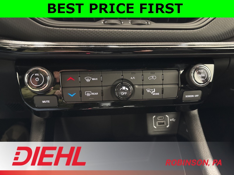 Inside, the Altitude trim steps things up with black premium cloth and vinyl bucket seats, a heated steering wheel, heated front seats, and remote start for those cold Pennsylvania mornings. The 10.1-inch Uconnect touchscreen with Apple CarPlay, Android Auto, and voice command brings big-screen tech to a compact cabin. Add the wireless charging pad, multiple USB ports, and digital cluster display, and you’ve got an interior that feels modern and upscale.