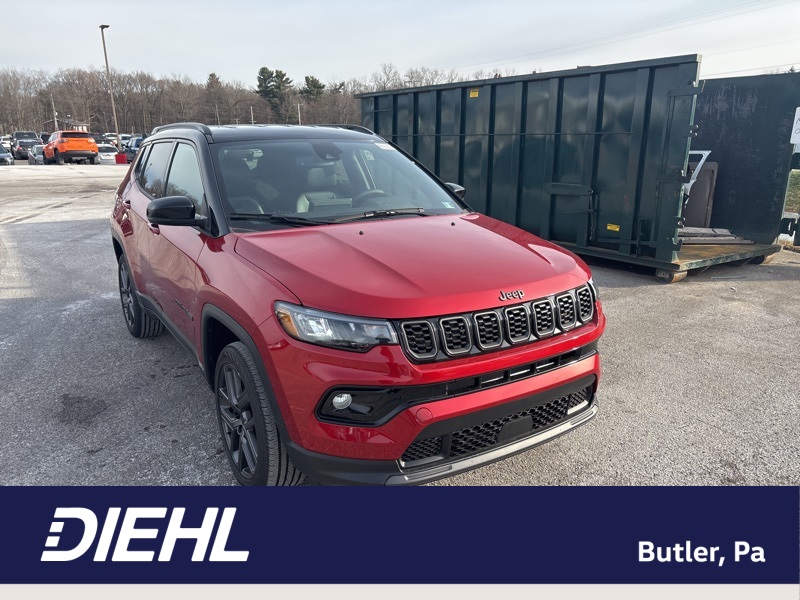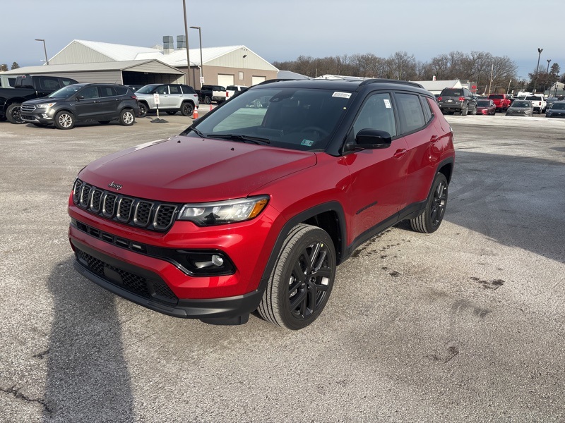 Limited Altitude Pack (Black Day Light Opening Moldings, Gloss Black Surround/Neutral Gray Rings, Neutral Gray Exterior Accents, Neutral Gray Exterior Badging, Piano Black Interior Accents, and Wheels: 19" x 7.5" Aluminum Painted), Quick Order Package 29W Limited Altitude, 4WD, 10.1" Touchscreen Display, 3.73 Final Drive Ratio, 4-Wheel Disc Brakes, 4G LTE Wi-Fi Hot Spot, 6 Speakers, ABS brakes, Air Conditioning, Alloy wheels, AM/FM radio: SiriusXM, Auto High-beam Headlights, Auto-dimming Rear-View mirror, Automatic temperature control, Brake assist, Bumpers: body-color, Compass, Delay-off headlights, Driver door bin, Driver vanity mirror, Dual front impact airbags, Dual front side impact airbags, Electronic Stability Control, Emergency communication system: SiriusXM Guardian, Four wheel independent suspension, Front anti-roll bar, Front Bucket Seats, Front Center Armrest w/Storage, Front dual zone A/C, Front fog lights, Front reading lights, Fully automatic headlights, Global Telematics Box Module, Heated door mirrors, Heated front seats, Heated steering wheel, Illuminated entry, Knee airbag, Leather Shift Knob, Leather steering wheel, Leatherette Seats, Low tire pressure warning, Occupant sensing airbag, Outside temperature display, Overhead airbag, Overhead console, Panic alarm, ParkView Rear Back-Up Camera, Passenger door bin, Passenger vanity mirror, Power door mirrors, Power driver seat, Power Liftgate, Power steering, Power windows, Premium audio system: UConnect 5, Radio: Uconnect 5 with 10.1" Display, Rain sensing wipers, Rear anti-roll bar, Rear seat center armrest, Rear window defroster, Rear window wiper, Remote keyless entry, Security system, SiriusXM Guardian - Included Trail (B), SiriusXM Radio Service, Speed control, Split folding rear seat, Spoiler, Steering wheel mounted audio controls, Tachometer, Telescoping steering wheel, Tilt steering wheel, Traction control, Trip computer, Turn signal indicator mirrors, Variably intermittent wipers, and Wheels: 18" x 7" Painted Diamond Cut Aluminum. 4WD. Red Hot Pearlcoat 2026 Jeep Compass Limited 4WD 8-Speed Automatic 2.0L I4 DOHC