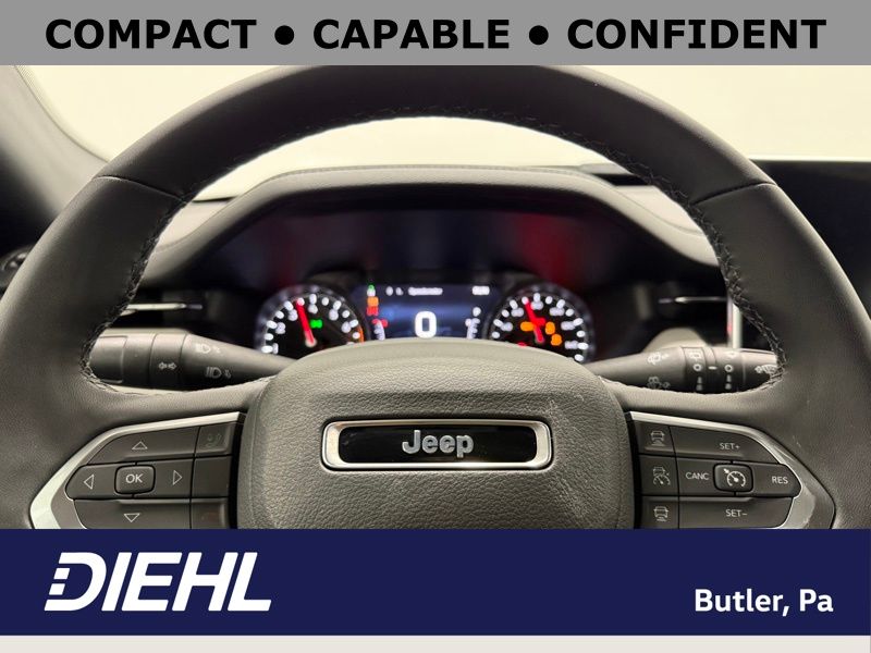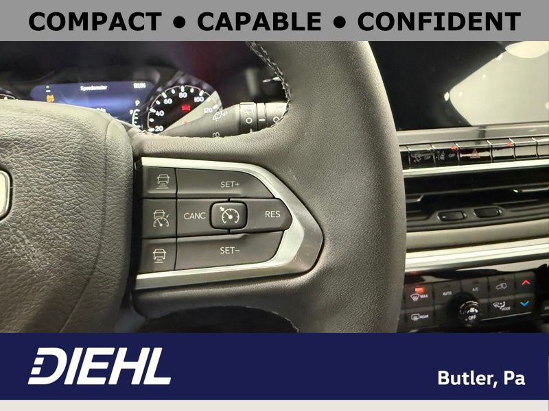Tech is cleanly integrated through Uconnect 5 with a 10.1-inch touchscreen display, premium audio system, AM/FM SiriusXM radio service, SiriusXM Guardian with included trial, a 4G LTE Wi-Fi hot spot, Global Telematics Box Module, steering wheel-mounted audio controls, compass, outside temperature display, trip computer, and tachometer. Daily convenience is covered with remote keyless entry, power windows, power steering, power and heated door mirrors, illuminated entry, rain-sensing and variably intermittent wipers, rear window wiper and defroster, auto-dimming rear-view mirror, delay-off headlights, fully automatic headlights, auto high-beam headlights, front fog lights, body-color bumpers, a rear spoiler, and turn signal indicator mirrors.