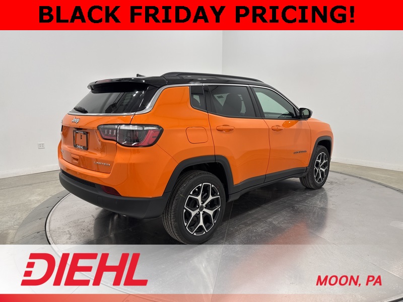 With all wheel drive capability, modern tech, and refined Jeep styling, this new Jeep Compass Limited Altitude 4x4 for sale near Pittsburgh is the perfect SUV for drivers who want it all. Visit Diehl of Moon Chrysler Jeep Dodge Ram in Moon Township PA today for the best new Jeep deals near Pittsburgh and experience the difference between getting there and arriving in style. Price includes: $1000 - 2026 National Retail Bonus Cash . Exp. 12/01/2025 $1500 - 2026 National SFS Lease Loyalty Bonus Cash . Exp. 12/01/2025 $1500 - 2026 National Stellantis Loyalty Retail Bonus Cash . Exp. 12/01/2025 $500 - 2026 National 2026 First Responder Bonus Cash . Exp. 01/05/2026