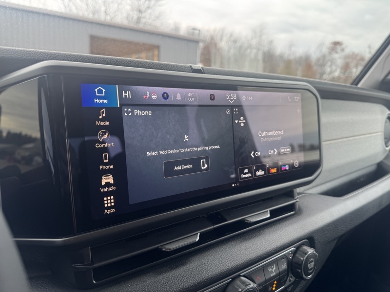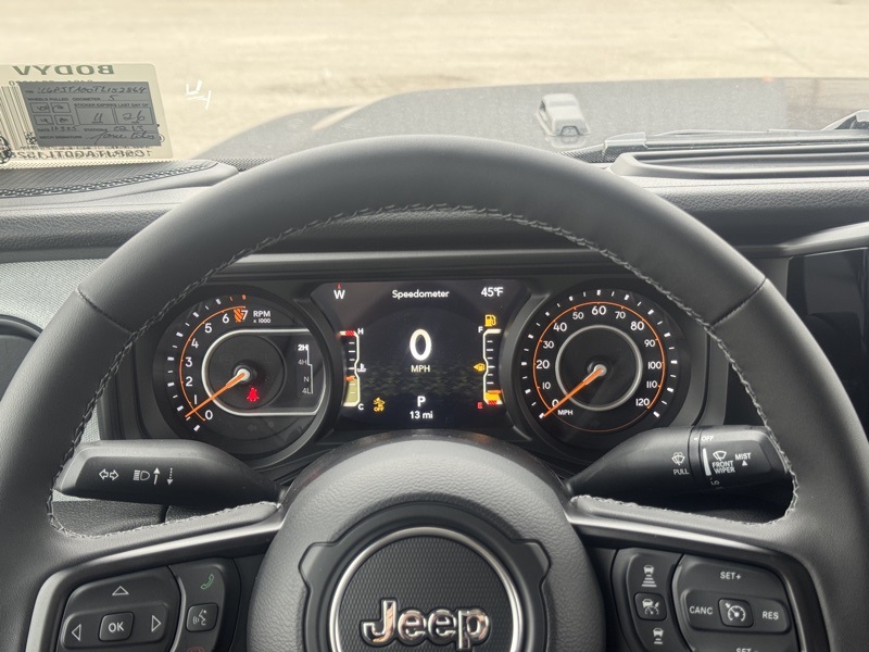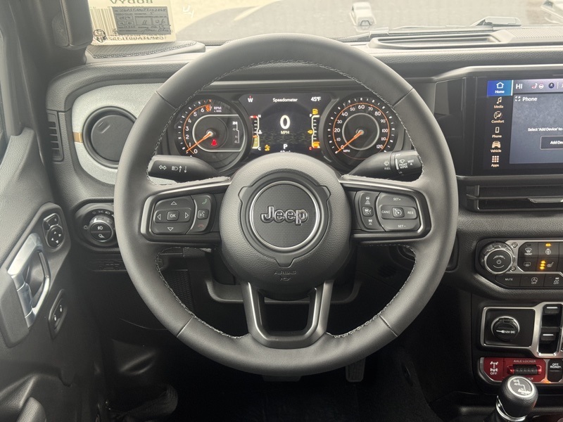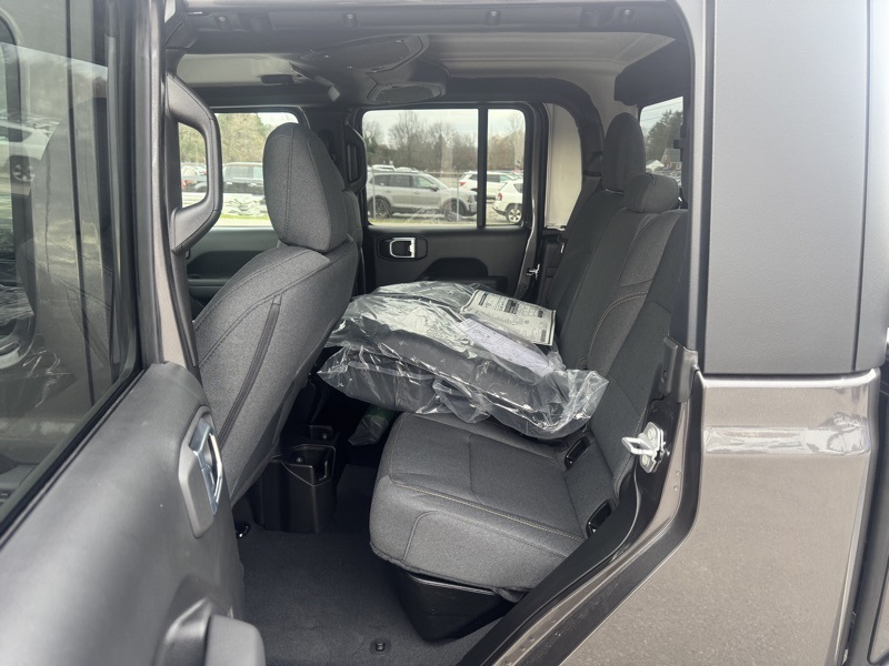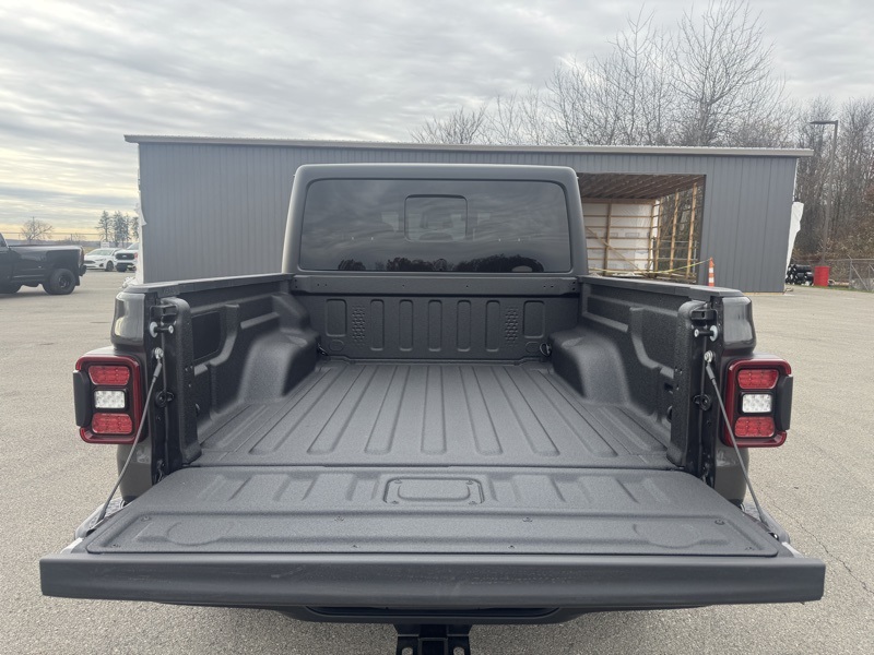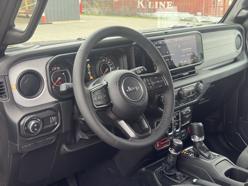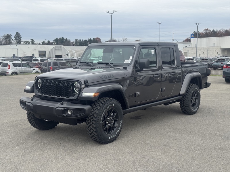 Convenience Group (Daytime Running Lamp System, Emergency/Assistance Call, Front Door Locks 2-Door Passive Entry, Heated Front Seats, Heated Steering Wheel, Remote Start System, and Universal Garage Door Opener), Quick Order Package 24W Willys (4-Wheel Drive Decal, Advanced Brake Assist, Air Conditioning w/Auto Temperature Control, Automatic Headlamps, Auxiliary Switches, Black Grille, Body Color Fender Flares (2-Piece), Class IV Receiver Hitch, Cluster 7.0" TFT Color Display, Corning Gorilla Glass, Daytime Running Lamps LED Accents, Deep Tint Sunscreen Windows, E-Locker Rear Axle, Front Heavy Duty Red Accent Shock Absorbers, Front LED Fog Lamps, Full Speed Forward Collision Warning Plus, Heavy-Duty Engine Cooling, LED Premium Reflector Headlamps, LED Taillamps, Mold In Color Bumper w/Gloss Black, MOPAR All-Weather Slush Mats, Off-Road Plus Mode, Power Heated Mirrors, Premium Wrapped Steering Wheel, Protection Sill Rails, Rear Heavy Duty Red Accent Shock Absorbers, Security Alarm, Sun Visors w/Illuminated Vanity Mirrors, Trailer Hitch Zoom, Wheels: 17" x 7.5" Painted Black, Willys Hood Decal, and Willys Suspension), 110 MPH Vehicle Max Speed Calibration, 3.73 Rear Axle Ratio, 4-Wheel Disc Brakes, 8 Speakers, ABS brakes, Air Conditioning, AM/FM radio: SiriusXM with 360L, Apple CarPlay/Android Auto, Black 3-Piece Hard Top, Brake assist, Cloth Low-Back Bucket Seats, Compass, Delay-off headlights, Driver door bin, Driver vanity mirror, Dual front impact airbags, Dual front side impact airbags, Electronic Stability Control, Freedom Panel Storage Bag, Front anti-roll bar, Front Bucket Seats, Front Center Armrest w/Storage, Front fog lights, Front reading lights, Illuminated entry, Integrated roll-over protection, Low tire pressure warning, MOPAR Spray In Bedliner, Normal Duty Suspension, Occupant sensing airbag, Outside temperature display, Overhead airbag, Panic alarm, ParkView Rear Back-Up Camera, Passenger door bin, Passenger vanity mirror, Power steering, Power windows, Radio data system, Radio: Uconnect 5 w/12.3" Display, Rear anti-roll bar, Rear reading lights, Rear Sliding Window, Rear Window Defroster, Remote keyless entry, Speed control, Split folding rear seat, Steering wheel mounted audio controls, Tachometer, Telescoping steering wheel, Tilt steering wheel, Traction control, Trip computer, Variably intermittent wipers, Voltmeter, and Wheels: 17" x 7.5" Black Steel Styled. Recent Arrival! Granite Crystal Metallic Clearcoat 2026 Jeep Gladiator Willys 4WD 8-Speed Automatic 3.6L V6 24V VVT