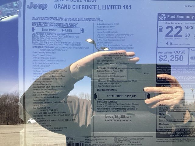 Bright White Clearcoat 2026 Grand Cherokee L Jeep Limited 4D Sport Utility 4WD 8-Speed Automatic 2.0L I4 PDI Turbocharged DOHC 16V LEV3-SULEV30 324hp