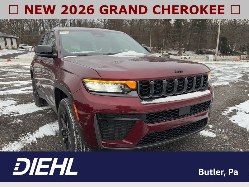 4WD, ABS brakes, Active Cruise Control, Alloy wheels, Compass, Electronic Stability Control, Emergency communication system, Front dual zone A/C, Heated door mirrors, Heated Exterior Mirrors, Illuminated entry, Low tire pressure warning, Manual Folding Exterior Mirrors, ParkView Rear Back-Up Camera, Remote keyless entry, Traction control, 3.45 Rear Axle Ratio, 4-Wheel Disc Brakes, 4G LTE Wi-Fi Hot Spot, 6 Speakers, Air Conditioning, AM/FM radio: SiriusXM, Anti-whiplash front head restraints, Apple CarPlay, AppLink/Apple CarPlay and Android Auto, Automatic temperature control, Auxiliary Battery, Brake assist, Bumpers: body-color, Cloth Seats, Connectivity - US/Canada, Delay-off headlights, Disassociated Touchscreen Display, Driver door bin, Driver vanity mirror, Dual front impact airbags, Dual front side impact airbags, For Details, Visit DriveUconnect.com, Four wheel independent suspension, Front anti-roll bar, Front Bucket Seats, Front Center Armrest w/Storage, Front reading lights, Fully automatic headlights, Global Telematics Box Module (TBM), Gloss Black Exterior Mirrors, Google Android Auto, GPS Antenna Input, Integrated Center Stack Radio, Integrated Voice Command with Bluetooth, Knee airbag, Normal Duty Suspension, Occupant sensing airbag, Outside temperature display, Overhead airbag, Overhead console, Panic alarm, Passenger door bin, Passenger vanity mirror, Power door mirrors, Power driver seat, Power steering, Power windows, Radio data system, Radio: Uconnect 5 with 8.4" Display, Rear anti-roll bar, Rear reading lights, Rear window defroster, Rear window wiper, Security system, Speed control, Speed-Sensitive Wipers, Split folding rear seat, Spoiler, Steering wheel mounted audio controls, Tachometer, Telescoping steering wheel, Tilt steering wheel, Trip computer, USB Host Flip, Variably intermittent wipers, Voltmeter, and Wheels: 18" x 8.0" Fully Painted AluminuM. 4WD, ABS brakes, Active Cruise Control, Alloy wheels, Compass, Electronic Stability Control, Emergency communication system, Front dual zone A/C, Heated door mirrors, Heated Exterior Mirrors, Illuminated entry, Low tire pressure warning, Manual Folding Exterior Mirrors, ParkView Rear Back-Up Camera, Remote keyless entry, Traction control. Velvet Red Pearlcoat 2026 Jeep Grand Cherokee Altitude 4WD 8-Speed Automatic 2.0L V6 SMPI Turbocharged DOHC 24V LEV3-SULEV30 293hp