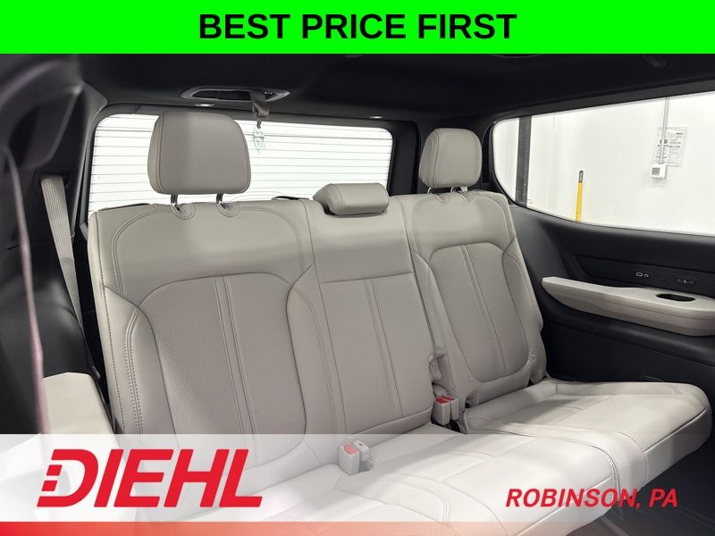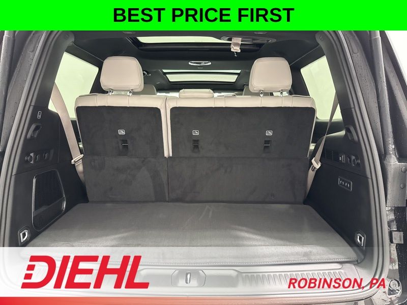 The second row captain’s chairs with power tilt and slide make access to the third row effortless, and the panoramic sunroof brings in light that makes the entire cabin feel even more open and upscale. Add in power deployable running boards, hands free liftgate, and a wireless charging pad, and you start to realize this vehicle is doing a lot of the thinking for you.