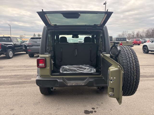 Convenience Group (2-Door Passive Entry, Front Door Locks, Air Conditioning w/Auto Temperature Control, Air Filtering, Cluster 7.0" TFT Color Display, Emergency/Assistance Call, Heated Front Seats, Heated Steering Wheel, Remote Start System, and Universal Garage Door Opener), Quick Order Package 22S Sport S (Advanced Brake Assist, Automatic Headlamps, Corning Gorilla Glass, Deep Tint Sunscreen Windows, Enhanced Adaptive Cruise Control, Full Speed Forward Collision Warning Plus, Power Heated Mirrors, Premium Wrapped Steering Wheel, Security Alarm, Sun Visors w/Illuminated Vanity Mirrors, and Wheels: 17" x 7.5" Gray), 3.45 Overall Top Gear Ratio, 4-Wheel Disc Brakes, 8 Speakers, ABS brakes, Air Conditioning, AM/FM radio: SiriusXM with 360L, Apple CarPlay/Android Auto, Aux Battery, Black 3-Piece Hard Top, Brake assist, Cloth Low-Back Bucket Seats, Compass, Delay-off headlights, Driver door bin, Driver vanity mirror, Dual front impact airbags, Dual front side impact airbags, Electronic Stability Control, Freedom Panel Storage Bag, Front anti-roll bar, Front Bucket Seats, Front Center Armrest w/Storage, Front fog lights, Front reading lights, Illuminated entry, Integrated roll-over protection, Low tire pressure warning, MOPAR All-Weather Floor Mats, No Soft Top, Non-Lock Fuel Cap w/o Discriminator, Normal Duty Suspension, Occupant sensing airbag, Outside temperature display, Overhead airbag, Panic alarm, ParkView Rear Back-Up Camera, Passenger door bin, Passenger vanity mirror, Power steering, Power windows, Radio data system, Radio: Uconnect 5 w/12.3" Display, Rear anti-roll bar, Rear reading lights, Rear Window Defroster, Rear Window Wiper/Washer, Remote keyless entry, Speed control, Steering wheel mounted audio controls, Stop-Start Dual Battery System, Tachometer, Telescoping steering wheel, Tilt steering wheel, Traction control, Trip computer, Variably intermittent wipers, and Wheels: 17" x 7.5" Black Steel Styled. New Price! Pj5 2026 Jeep Wrangler Sport S 4WD 8-Speed Automatic 2.0L I4 DOHC