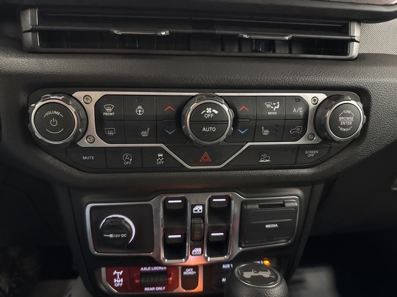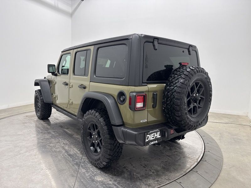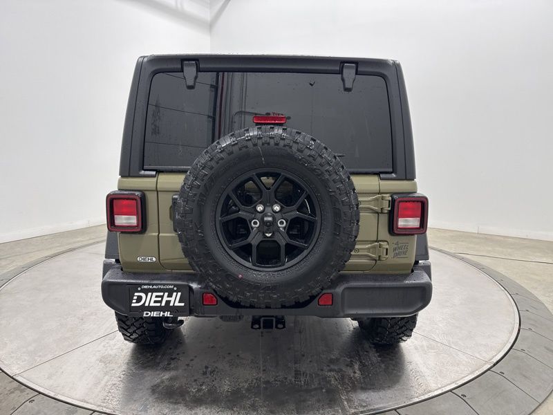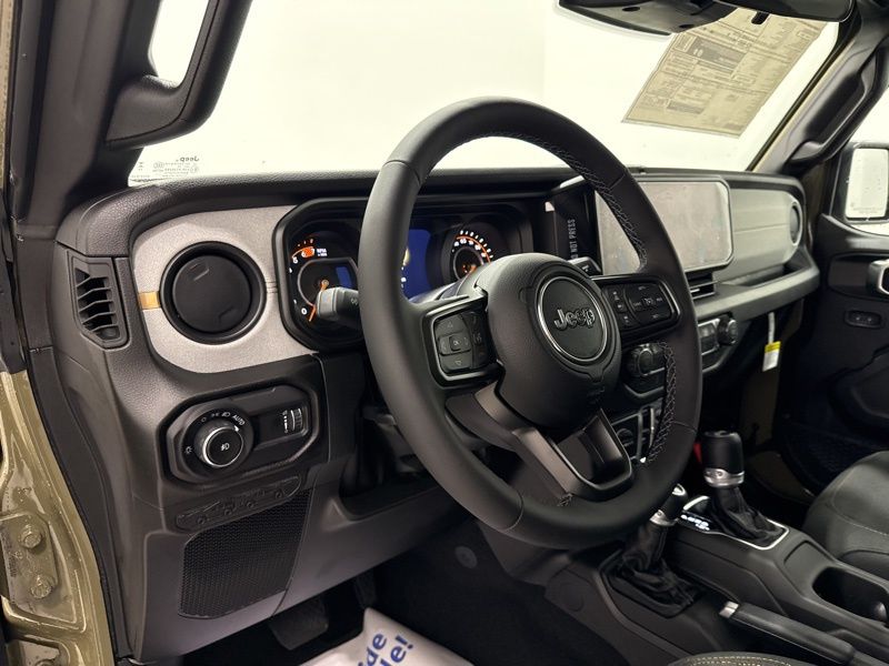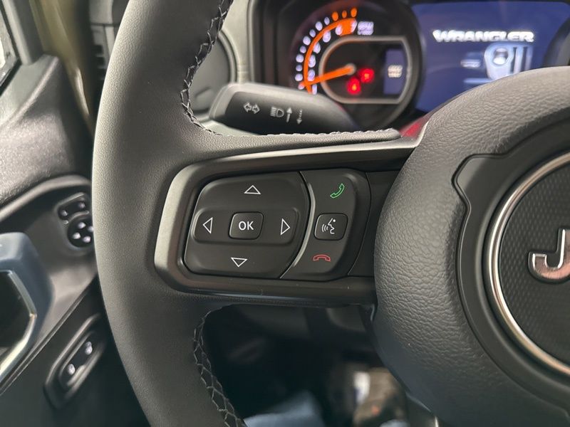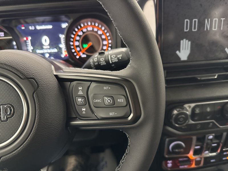2-Door Passive Entry, Front Door Locks, 4-Wheel Drive Swing Gate Decal, 4.10 Rear Axle Ratio, 7 and 4 Pin Wiring Harness, Advanced Brake Assist, Air Conditioning with Auto Temp Control, Air Filtering, Automatic Headlamps, Auxiliary Switches, Black Grille with Gloss Black Rings, Class II Receiver Hitch, Cluster 7.0" TFT Color Display, Convenience Group, Conventional Differential Front Axle, Corning Gorilla Glass, Dana M210 Wide HD Tube Front Axle, Dana M220 Wide Rear Axle, Daytime Running Lamps LED Accents, Deep Tint Sunscreen Windows, Dual Top Group, E-Locker Rear Axle, Emergency/Assistance Call, Enhanced Adaptive Cruise Control, Front LED Fog Lamps, Full Speed Forward Collision Warning Plus, Heated Front Seats, Heated Steering Wheel, Injection Molded Black Rear Bumper, LED Premium Reflector Headlamps, Mold in Color Bumper with Gloss Black, Molded in Color Rubicon Highline Flare, MOPAR All-Weather Floor Mats, Off-Road Plus Mode, Power Dome Dual Vented Hood, Power Heated Mirrors, Premium Black Sunrider Soft Top with Dual Top Group, Premium Wrapped Steering Wheel, Quick Order Package 24W Willys, Security Alarm, Steel Power Dome Hood Package, Sun Visors with Illuminated Vanity Mirrors, Universal Garage Door Opener, Wheels: 17" x 7.5" Painted Black, Willys Hood Decal.