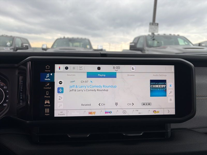 Inside, the cabin is equipped with a 12.3 inch touchscreen running Uconnect 5, giving you access to Apple CarPlay, Android Auto, SiriusXM with 360L, Google Android Auto, and a 4G LTE Wi Fi hot spot. An 8 speaker audio system, steering wheel mounted audio controls, compass, trip computer, and tachometer keep everything easily accessible.