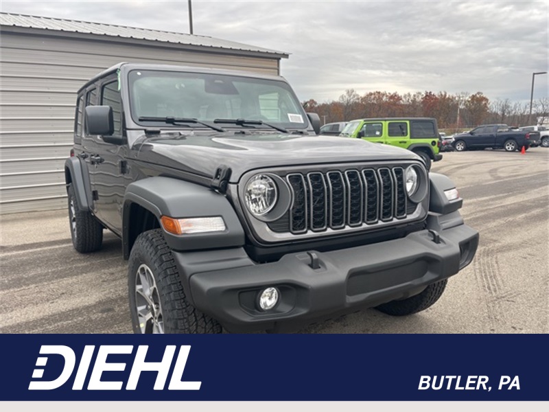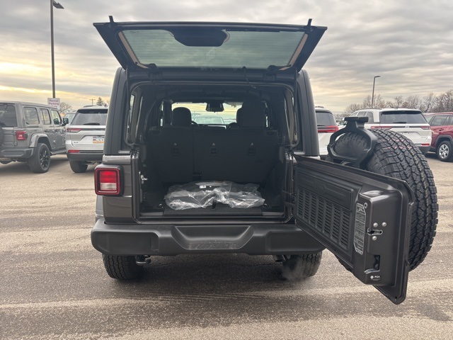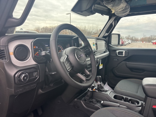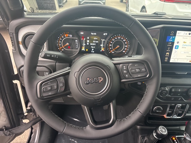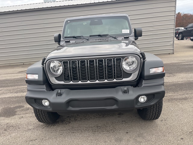 Convenience Group (2-Door Passive Entry, Front Door Locks, Air Conditioning w/Auto Temperature Control, Air Filtering, Cluster 7.0" TFT Color Display, Emergency/Assistance Call, Heated Front Seats, Heated Steering Wheel, Remote Start System, and Universal Garage Door Opener), Quick Order Package 22S Sport S (Advanced Brake Assist, Automatic Headlamps, Corning Gorilla Glass, Deep Tint Sunscreen Windows, Enhanced Adaptive Cruise Control, Full Speed Forward Collision Warning Plus, Power Heated Mirrors, Premium Wrapped Steering Wheel, Security Alarm, Sun Visors w/Illuminated Vanity Mirrors, and Wheels: 17" x 7.5" Gray), 3.45 Overall Top Gear Ratio, 4-Wheel Disc Brakes, 8 Speakers, ABS brakes, Air Conditioning, AM/FM radio: SiriusXM with 360L, Apple CarPlay/Android Auto, Aux Battery, Black 3-Piece Hard Top, Brake assist, Cloth Low-Back Bucket Seats, Compass, Delay-off headlights, Driver door bin, Driver vanity mirror, Dual front impact airbags, Dual front side impact airbags, Electronic Stability Control, Freedom Panel Storage Bag, Front anti-roll bar, Front Bucket Seats, Front Center Armrest w/Storage, Front fog lights, Front reading lights, Illuminated entry, Integrated roll-over protection, Low tire pressure warning, MOPAR All-Weather Floor Mats, Non-Lock Fuel Cap w/o Discriminator, Normal Duty Suspension, Occupant sensing airbag, Outside temperature display, Overhead airbag, Panic alarm, ParkView Rear Back-Up Camera, Passenger door bin, Passenger vanity mirror, Power steering, Power windows, Radio data system, Radio: Uconnect 5 w/12.3" Display, Rear anti-roll bar, Rear reading lights, Rear Window Defroster, Rear Window Wiper/Washer, Remote keyless entry, Speed control, Split folding rear seat, Steering wheel mounted audio controls, Stop-Start Dual Battery System, Tachometer, Telescoping steering wheel, Tilt steering wheel, Traction control, Trip computer, Variably intermittent wipers, Wheels: 17" x 7.5" Black Steel Styled, and Wheels: 17" x 7.5" Machined w/Black Pockets. Granite Crystal Metallic Clearcoat 2026 Jeep Wrangler Sport S 4WD 8-Speed Automatic 2.0L I4 DOHC
