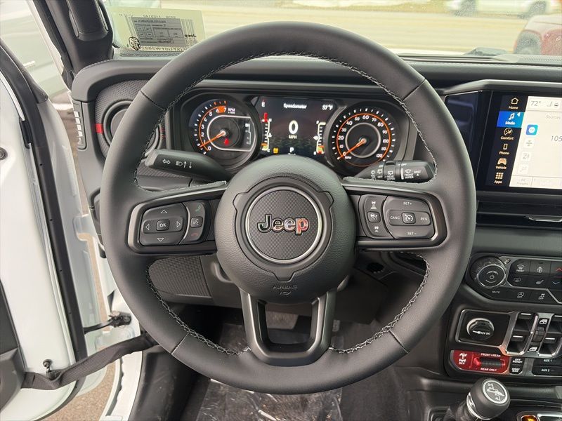Equipped with the Quick Order Package 24R Rubicon and the Convenience Group, this Wrangler includes heated front seats, a heated steering wheel, and a universal garage door opener for added comfort. The 12.3 inch Uconnect 5 touchscreen display features Apple CarPlay, Android Auto, Google Android Auto, SiriusXM with 360L, SiriusXM radio service, and a 4G LTE Wi Fi hot spot. An 8 speaker audio system and steering wheel mounted controls keep entertainment and settings easy to manage.