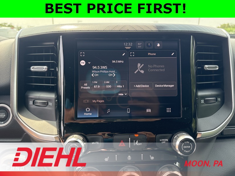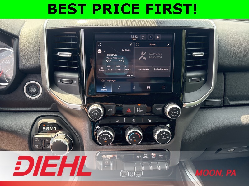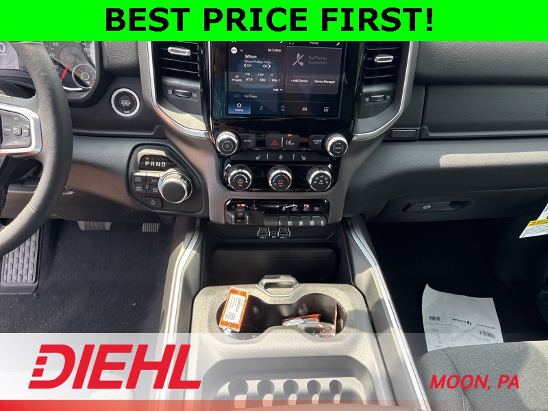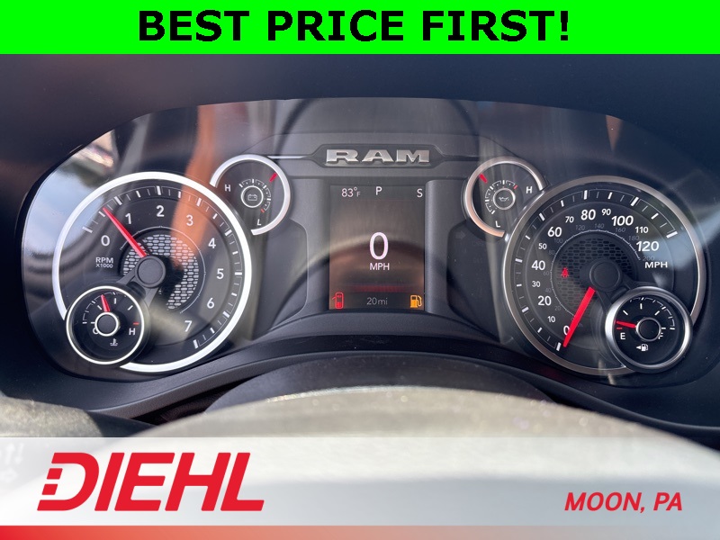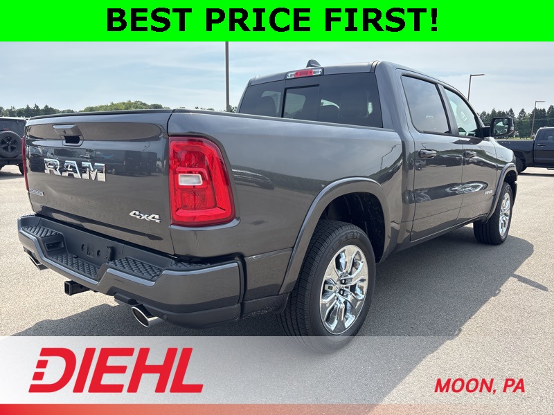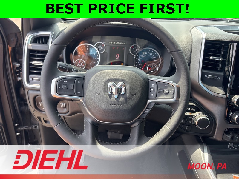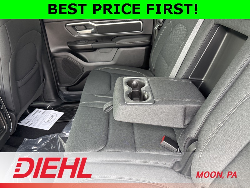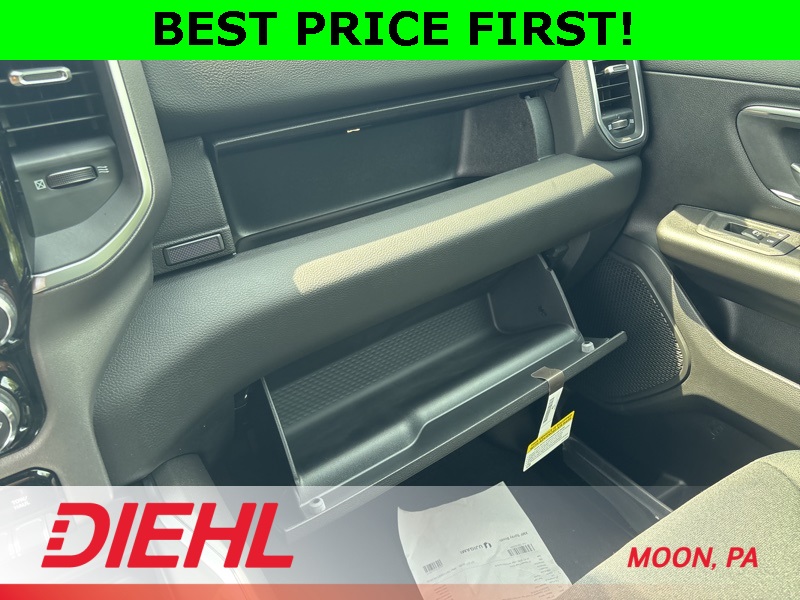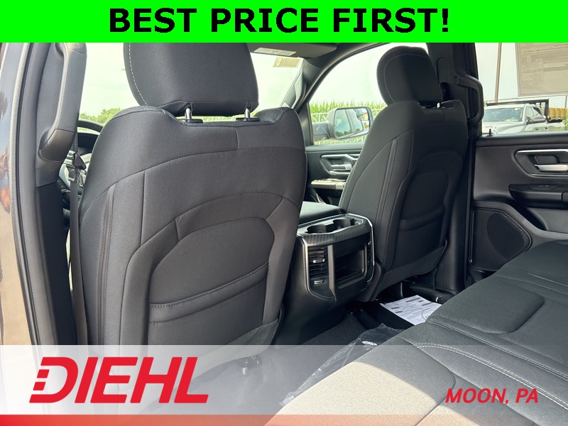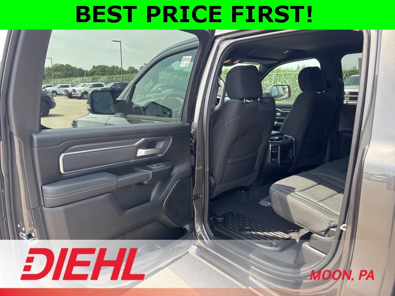 If you've been waiting for a truck that can be both the king of the jobsite and the ruler of Saturday tailgates, let me introduce the 2026 Ram 1500 Big Horn Crew Cab 4x4. Painted in Granite Crystal Metallic and riding high on its rugged stance, this full-size pickup is the perfect balance of brute force and modern refinement, making it the most exciting new Ram 1500 for sale in Pittsburgh.Power comes from the legendary 5.7L HEMI V8 with eTorque, giving you the kind of strength that laughs at trailers and makes highway merges feel like launching a rocket. Paired with an 8-speed automatic transmission, the drive is smoother than a steelworkers storytelling voice at Primantis. With optional Sport Appearance Package 2, chrome accents, dual exhaust tips, and 20-inch wheels, this truck doesn't just arrive, it makes an entrance.Inside, you'll find the Deluxe Cloth bucket seats, a power-adjustable drivers seat, and the Uconnect 5 system with a crisp 12-inch touchscreen. Its packed with features like Apple CarPlay, Android Auto, and a Wi-Fi hotspot, making it part mobile office, part family entertainment hub. Add in advanced safety like Forward Collision Warning, Blind Spot Monitoring, and ParkSense front and rear sensors, and you've got confidence whether you're hauling gear through Moon Township or parallel parking in downtown Pittsburgh.For those chasing the best new truck deals near Moon Township PA, this Ram 1500 Big Horn delivers the lifestyle upgrade you didn't know you needed. From grocery runs to towing boats down the Ohio River, its versatile, stylish, and ready for anything. Visit Diehl of Moon, your trusted Ram 1500 dealership in Western PA, and take this HEMI-powered legend for a spin today before someone else claims it as their own.Disclaimer:New vehicle pricing includes all offers and incentives. Tax, Title and Tags not included in vehicle prices shown and must be paid by the purchaser. While great effort is made to ensure the accuracy of the information on this site, errors do occur so please verify information with a customer service rep. This is easily done by calling us at (412)-264-4270 or by visiting us at the dealership.All pricing and details are believed to be accurate, but we do not warrant or guarantee such accuracy. The prices shown above, may vary from region to region, as will incentives, and are subject to change. Vehicle information is based off standard equipment and may vary from vehicle to vehicle. Call or email for complete vehicle specific information. Price includes: $3500 - 2026 National Retail Consumer Cash . Exp. 11/03/2025
