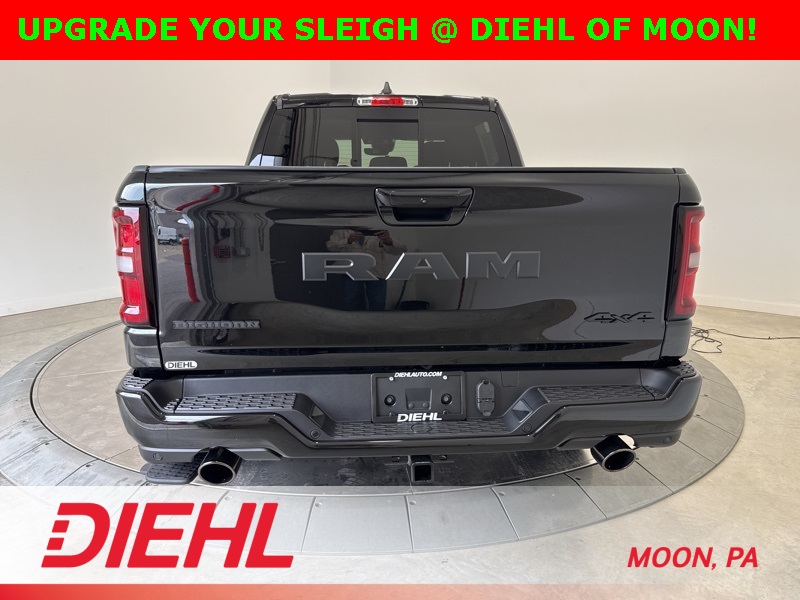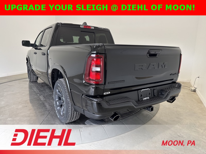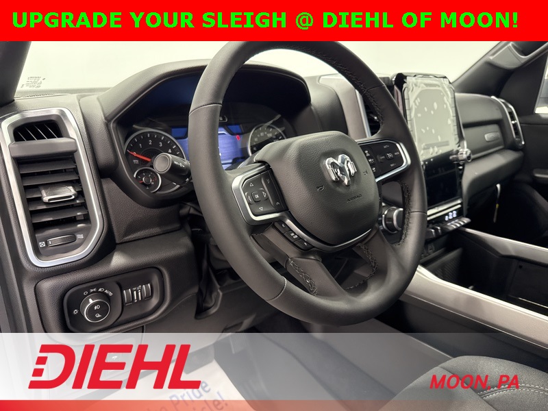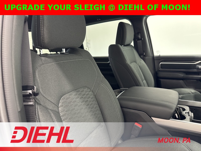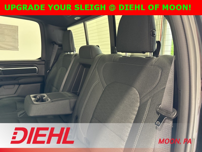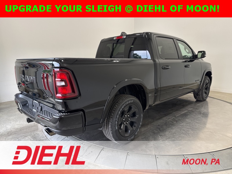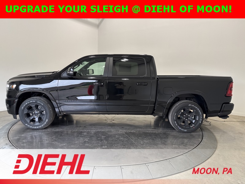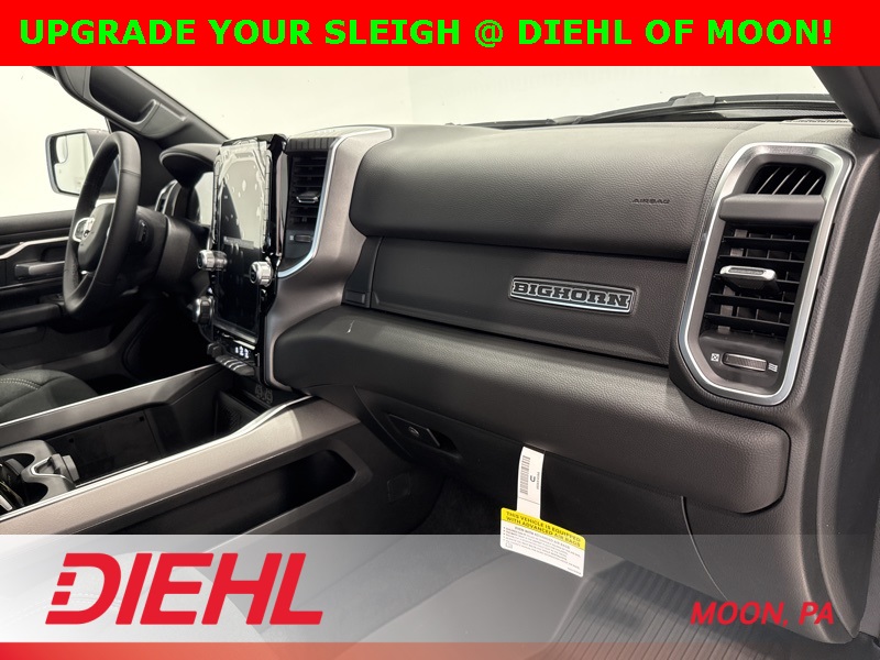 The 2026 Ram 1500 Big Horn Crew Cab 4x4 is what you get when power, polish, and pure American grit form a truck-shaped masterpiece. Beneath the hood roars the 3.0 I-6 with , matched to an 8-speed automatic thats smoother than a Steelers fan celebrating on Carson Street. This Big Horn means business with four-wheel drive, heavy-duty shock absorbers, and an electronic shift-on-demand transfer case ready to handle whatever Western PA roadsor off-roadsthrow its way. Inside, comfort meets command with a Uconnect 5 system on an 8.4-inch touchscreen, Apple CarPlay, Android Auto, and dual-zone climate control. The premium cloth bench seat keeps long drives civilized, while the crew cab gives your passengers legroom thatll make them question why they ever owned a sedan. Outside, it flexes 18-inch aluminum wheels, chrome bumpers, and LED bed lighting, perfect for late-night tailgate missions. Safety features like blind spot monitoring, ParkSense front and rear assist, and trailer brake control keep you confidently in charge whether youre towing, hauling, or just flexing at red lights. If youre hunting for the best new truck deals near Moon Township PA or searching for a new Ram 1500 for sale in Pittsburgh, this Big Horn is your golden ticket. Visit Diehl of Moon today and see why Ram trucks rule Western PA. Price includes: $2000 - 2026 National SFS Lease Loyalty Bonus Cash . Exp. 01/05/2026 $3500 - 2026 National Retail Consumer Cash . Exp. 01/05/2026 $500 - 2026 National 2026 First Responder Bonus Cash . Exp. 01/05/2026