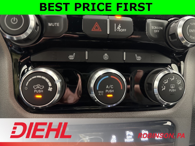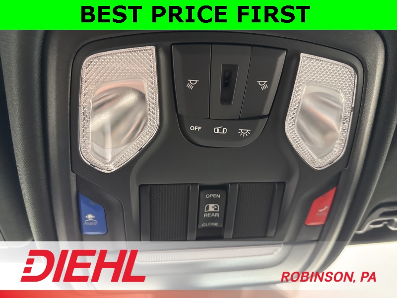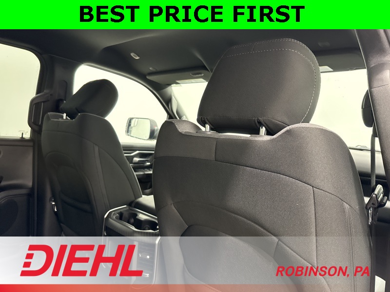 Inside, it’s all about refinement and function. The spacious Crew Cab gives everyone room to relax, while features like heated front seats, a heated steering wheel, dual-zone climate control, and premium cloth seating make every drive feel first-class. The Uconnect 5 system with a massive 12-inch touchscreen, Apple CarPlay, Android Auto, and SiriusXM keeps your world connected in crystal clarity.