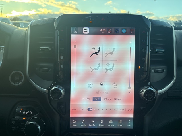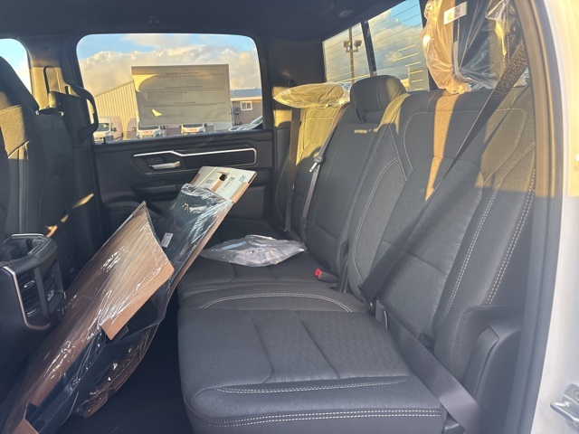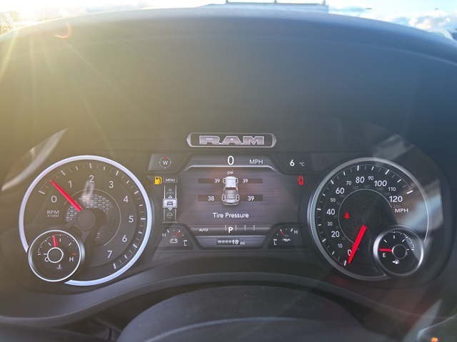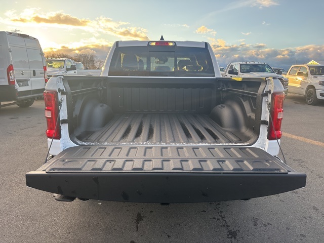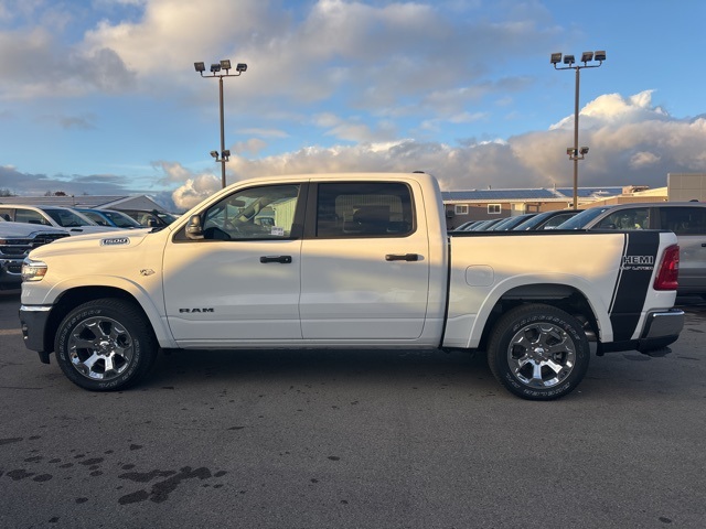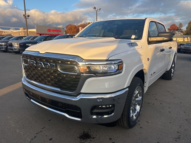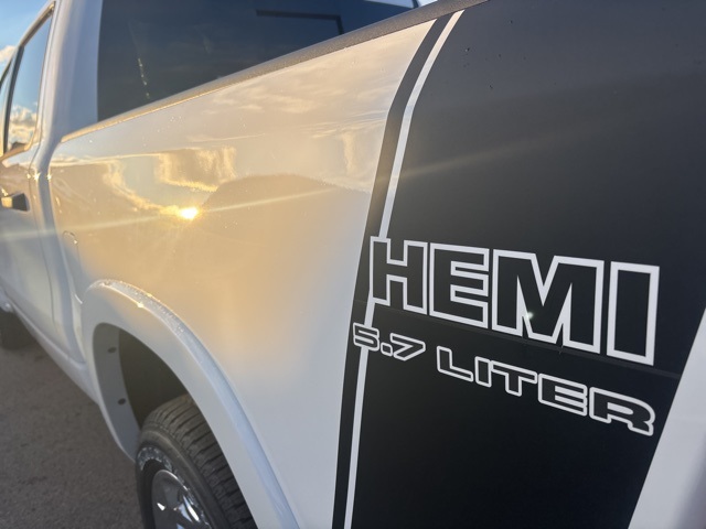 Bed Utility Group (Exterior 115V AC Outlet, MOPAR 4 Adjustable Cargo Tie-Down Hooks, MOPAR Spray In Bedliner, and Pick-Up Box Lighting), Big Horn Level 2 Equipment Group (115V Auxiliary Power Outlet, 115V Auxiliary Rear Power Outlet, 12" Touchscreen Display, 2nd Row In Floor Storage Bins, 3 Rear Seat Head Restraints, 4 Way Front Headrests, 400W Inverter, 4G LTE Wi-Fi Hot Spot, 9 Amplified Speakers w/Subwoofer, Air Conditioning ATC w/Dual Zone Control, Apple CarPlay, Auto Power-Folding Mirrors, Auto-Dimming Exterior Driver Mirror, Auto-Dimming Rear-View Mirror, Black Exterior Mirrors, Black Premium Power Mirrors, Body Color Fender Flares, Bucket Seats, Center Console Parts Module, Cluster 7.0" TFT Color Display, Configurable Drive Mode, Connected Travel & Traffic Services, Connectivity - US/Canada, Convex Wide-Angle Exterior Mirror Insert, Deluxe Cloth Bucket Seats, Disassociated Touchscreen Display, Exterior Mirrors Courtesy Lamps, Exterior Mirrors w/Heating Element, Exterior Mirrors w/Supplemental Signals, Front Seat Back Map Pockets, Full Length Floor Console, Global Telematics Box Module (TBM), Glove Box Lamp, Google Android Auto, GPS Antenna Input, GPS Navigation, HD Radio, Heated Front Seats, Heated Steering Wheel, Integrated Center Stack Radio, Integrated Voice Command w/Bluetooth, Leather Wrapped Steering Wheel, LED Dome Lamp w/On/Off Switch, LED Footwell Lighting, Manual Adjust 4-Way Front Passenger Seat, Media Hub w/2 Charge Only USBs, Overhead LED Lamps, Power 2-Way Driver Lumbar Adjust, Power Adjust 8-Way Driver Seat, Power Adjustable Pedals, Premium Overhead Console, Radio: Uconnect 5 Nav w/12.0" Display, Rear 60/40 Folding Seat, Rear Center Armrest, Rear Power Sliding Window, Rear Window Defroster, Remote Tailgate Release, Security Alarm, SiriusXM Radio Service, SiriusXM w/360L, Steering Wheel Mounted Audio Controls, Sun Visors w/Illuminated Vanity Mirrors, Universal Garage Door Opener, USB Host Flip, and Wheels: 20" x 9" Aluminum Chrome Clad (WRK)), Quick Order Package 27Z Big Horn, 33 Gallon Fuel Tank, 4-Wheel Disc Brakes, 48V Belt Starter Generator, 6 Speakers, ABS brakes, Air Conditioning, Alloy wheels, AM/FM radio, Apple CarPlay/Android Auto, Auto High-beam Headlights, Brake assist, Bumpers: chrome, Cloth Bucket Seats, Compass, Delay-off headlights, Driver door bin, Dual front impact airbags, Dual front side impact airbags, Electronic Stability Control, Front anti-roll bar, Front Bucket Seats, Front Center Armrest w/Storage, Front fog lights, Front reading lights, Front wheel independent suspension, Fully automatic headlights, Heated door mirrors, Illuminated entry, Low tire pressure warning, Manual Adjust 4-Way Driver Seat, Manual Folding Exterior Mirrors, MOPAR Front & Rear Rubber Floor Mats, Occupant sensing airbag, Outside temperature display, Overhead airbag, Overhead console, Panic alarm, ParkView Rear Back-Up Camera, Passenger door bin, Passenger vanity mirror, Power door mirrors, Power steering, Power windows, Radio data system, Radio: Uconnect 5 W w/8.4" Display, RAM Grille Badge - Chrome, Rear anti-roll bar, Rear step bumper, Remote keyless entry, Speed control, Supplier Part Tracking (J-1), Tachometer, Telescoping steering wheel, Tilt steering wheel, Traction control, Trailer Brake Control, Trip computer, Variably intermittent wipers, Voltmeter, and Wheels: 18" x 8" Cast-Aluminum Painted. Bright White Clearcoat 2026 Ram 1500 Big Horn/Lone Star 4WD 8-Speed Automatic HEMI 5.7L V8 Multi Displacement VVT eTorque