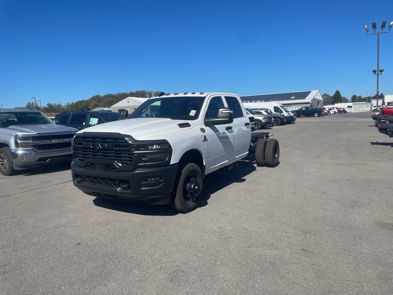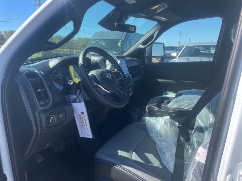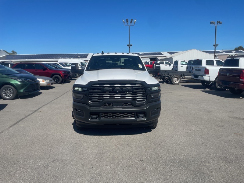Cold Weather Group (Engine Block Heater and MOPAR Winter Front Grille Cover), Quick Order Package 25A Tradesman, Tradesman Level 1 Equipment Group (Black Exterior Mirrors, Black Power Heated Fold Telescope Mirrors, Exterior Mirrors Courtesy Lamps, Exterior Mirrors with Heating Element, Exterior Mirrors with Supplemental Signals, Manual Folding Exterior Mirrors, Manuarl Telescoping Mirrors, Mirror Running Lights, Power Adjust Mirrors, Power-Adjustable Convex Aux Mirrors, Rear Window Defroster, Trailer Brake Control, and Trailer Light Check), 11.50" Dual Wheels Rear Axle, 2 Way Rear Headrest Seat, 4-Wheel Disc Brakes, 40/20/40 Split Bench Seat, 4G LTE Wi-Fi Hot Spot, 6 Speakers, 6000# Front Axle with Hub Extension, ABS brakes, Air Conditioning, AM/FM radio: SiriusXM, Apple CarPlay, Apple CarPlay/Android Auto, Black Wheel Center Hub, Cargo and CHMSL Lamp, Center Hub, Compass, Connectivity - US/Canada, Delay-off headlights, Driver door bin, Dual front impact airbags, Dual Rear Wheels, Electronic Stability Control, Emergency communication system: RAM Connect, For Details, Visit DriveUconnect.com, Front anti-roll bar, Front Armrest with Cupholders, Front Center Armrest w/Storage, Front fog lights, Front License Plate Bracket, Front reading lights, Fully automatic headlights, Global Telematics Box Module, Google Android Auto, GPS Antenna Input, HD Vinyl 40/20/40 Split Bench Seat, Illuminated entry, Integrated Voice Command with Bluetooth, Manual Adjust 4-Way Driver Seat, Manual Adjust 4-Way Front Passenger Seat, Nexen Brand Tires, Occupant sensing airbag, Outside temperature display, Overhead console, Panic alarm, ParkView Rear Back-Up Camera, Passenger door bin, Passenger vanity mirror, Power steering, Power windows, Radio data system, Radio: Uconnect 5 with 8.4" Display, Rear anti-roll bar, Rear Folding Seat, Remote keyless entry, Remote USB Port - Charge Only, Speed control, Storage Tray, Tachometer, Temperature and Compass Gauge, Tilt steering wheel, Traction control, Variably intermittent wipers, Voltmeter, Wheels: 17" x 6.0" Black Painted Steel, and Wheels: 18" x 8.0" Steel PainteD. Bright White Clearcoat 2026 Ram 3500 Tradesman 4WD 8-Speed Automatic Cummins 6.7L I6 Turbodiesel
