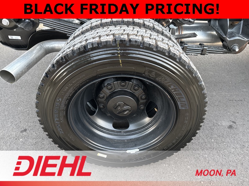 - 19.5 x 6-inch front and dual rear black steel wheels