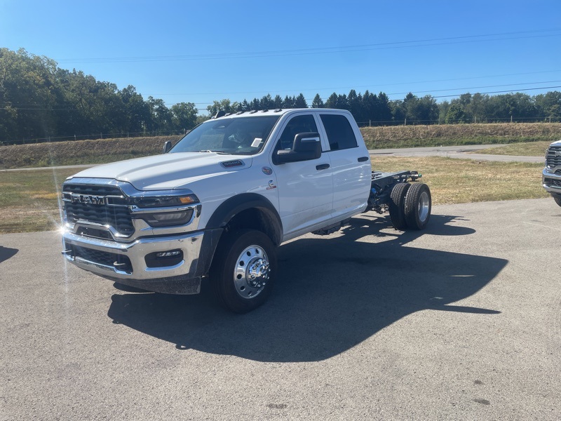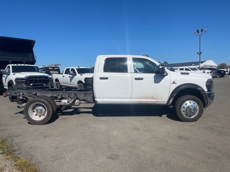 Chrome Appearance Group (19.5" x 6.0" Steel Wheels, Bright Front Bumper, Center Hub, Chrome Grille Surround, and Matte Black Mesh with Chrome Grille), Heavy Duty Snow Plow Prep Group (Heavy Duty Front Suspension Group and Upgraded Rear HD Stabilizer Bar), Quick Order Package 25A Tradesman, Tradesman Level 1 Equipment Group (Black Exterior Mirrors, Black Power Heated Fold Telescope Mirrors, Exterior Mirrors Courtesy Lamps, Exterior Mirrors with Heating Element, Exterior Mirrors with Supplemental Signals, Manual Folding Exterior Mirrors, Manuarl Telescoping Mirrors, Mirror Running Lights, Power Adjust Mirrors, Power-Adjustable Convex Aux Mirrors, Rear Window Defroster, Trailer Brake Control, and Trailer Light Check), 4-Wheel Disc Brakes, 4.44 Axle Ratio, 40/20/40 Split Bench Seat, 4G LTE Wi-Fi Hot Spot, 6 Speakers, ABS brakes, Air Conditioning, AM/FM radio: SiriusXM, Apple CarPlay, Apple CarPlay/Android Auto, Compass, Connectivity - US/Canada, Delay-off headlights, Driver door bin, Dual front impact airbags, Dual rear wheels, Electronic Stability Control, Emergency communication system: RAM Connect, For Details, Visit DriveUconnect.com, Front anti-roll bar, Front Armrest with Cupholders, Front Center Armrest w/Storage, Front fog lights, Front License Plate Bracket, Front reading lights, Fully automatic headlights, Global Telematics Box Module, Google Android Auto, GPS Antenna Input, Integrated Voice Command with Bluetooth, Manual Adjust 4-Way Driver Seat, Manual Adjust 4-Way Front Passenger Seat, Occupant sensing airbag, Outside temperature display, Overhead console, Panic alarm, ParkView Rear Back-Up Camera, Passenger door bin, Passenger vanity mirror, Power steering, Power Take-Off Right/Left, Power windows, Radio data system, Radio: Uconnect 5 with 8.4" Display, Rear anti-roll bar, Rear Folding Seat, Rear reading lights, Remote keyless entry, Remote USB Port - Charge Only, Speed control, Tachometer, Temperature and Compass Gauge, Tilt steering wheel, Traction control, Variably intermittent wipers, Voltmeter, Wheels: 19.5" x 6.0" Black Painted Steel, and Wheels: 19.5" x 6.0" Forged Aluminum PolisheD. Bright White Clearcoat 2026 Ram 5500HD Tradesman 4WD 8-Speed Automatic Cummins 6.7L I6 Turbodiesel