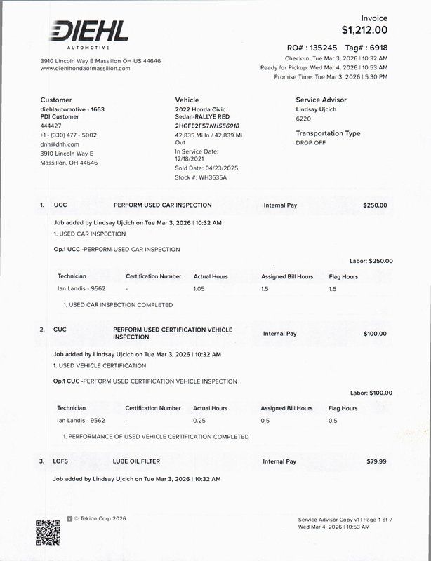 Diehl Automotive utilizes a system that generates market value pricing automatically for new and pre-owned vehicles and may cause errors, inaccuracies, or omissions. Some aftermarket additions or accessories may not be displayed properly. For accuracy, please contact the dealer for real-time, accurate pricing. A documentation fee of $490 applies and is not included in the pricing. Tax, title, and tags are also not included and must be paid by the purchaser. Some prices may include manufacturer-to-dealer offers that are not compatible with manufacturer special finance programs and/or lease offers. While great effort is made to ensure the accuracy of the information on this site, errors do occur, so please verify information with a customer service representative. This is easily done by calling us or by visiting us at the dealership.