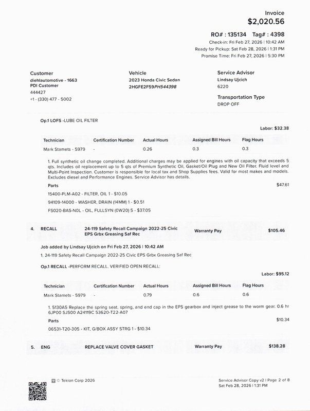 - 2L I-4 gasoline direct injection, DOHC, i-VTEC variable valve control, regular unleaded, engine with 158HP