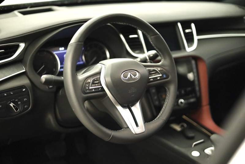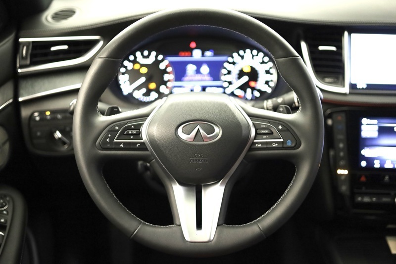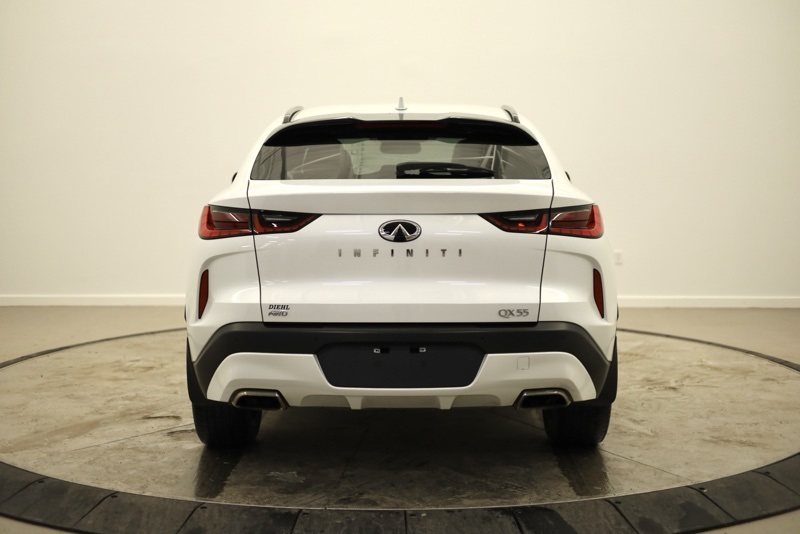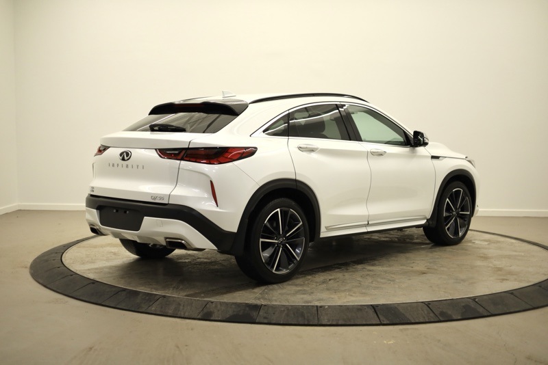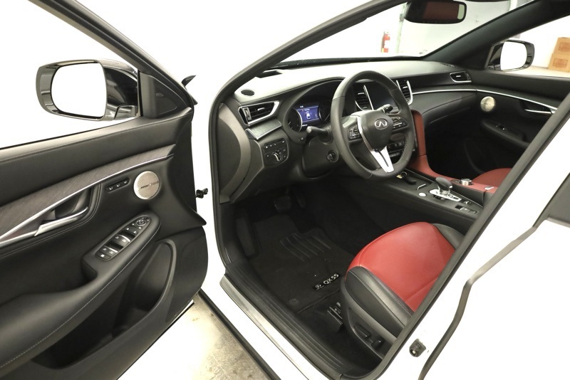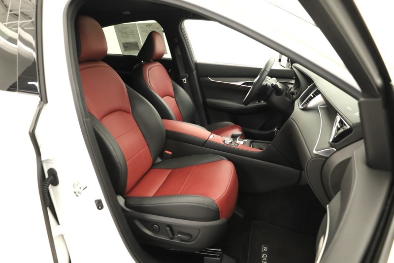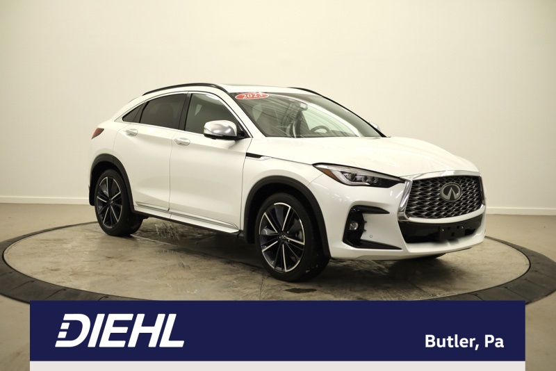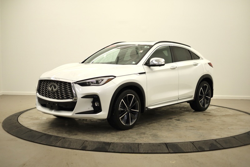 **CLEAN CARFAX**, **BACK UP CAMERA**, **SPECIAL COLOR**, **BOSE PREMIUM SOUND**, **BIRDSEYE VIEW**, **REMOTE START**, **POWER LIFTGATE**, **AUTO HEADLIGHTS**, **MEMORY DRIVER SEAT**, **FACTORY NAVIGATION**, **HEATED AND COOLED FRONT SEATS**, **REAR PARKING SONAR**, **LANE KEEP ASSIST**, **BLIND SPOT DETECTION**, **FRONT COLLISION MITIGATION**, **LIGHTING PACKAGE**, **ACCENT PACKAGE**, 4-Wheel Disc Brakes, ABS brakes, Accent Package, Dual front impact airbags, Dual front side impact airbags, Emergency communication system: INFINITI InTouch, Front anti-roll bar, Illuminated Kick Plates, Knee airbag, Lighting Package, Low tire pressure warning, Matte Chrome Bodyside Molding, Matte Chrome Mirror Caps, Navigation system: INFINITI InTouch Navigation, Occupant sensing airbag, Overhead airbag, Rear anti-roll bar, Rear side impact airbag, Welcome Lighting. Recent Arrival! Clean CARFAX. Radiant White 2023 INFINITI QX55 SENSORY AWD CVT I4