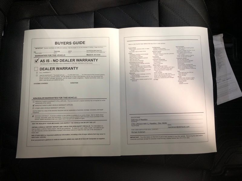 *Confirm any warranty information with dealer before purchase.Roadside warranty